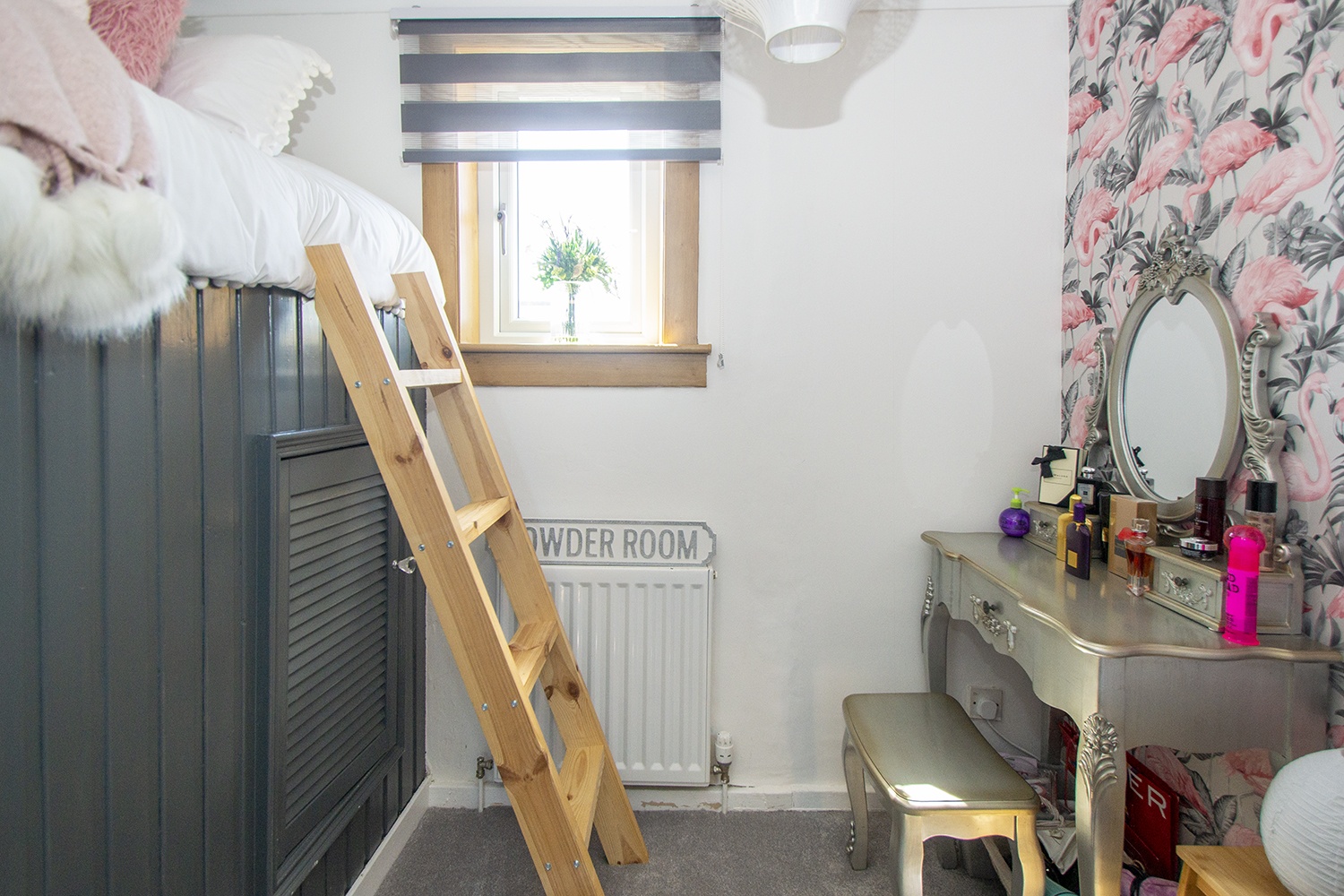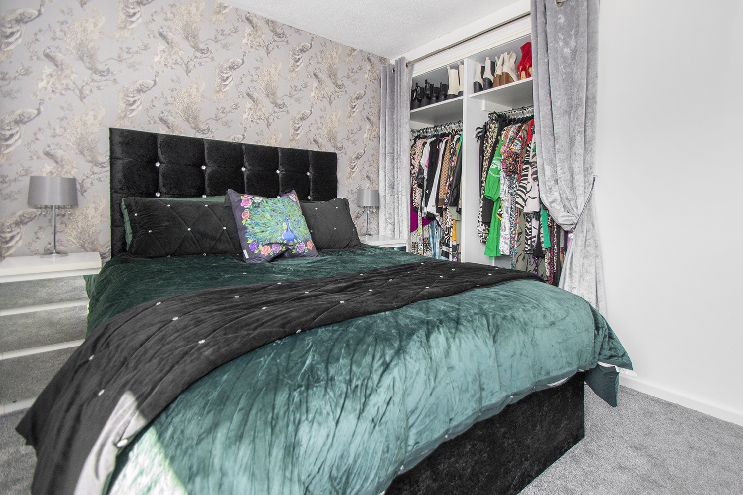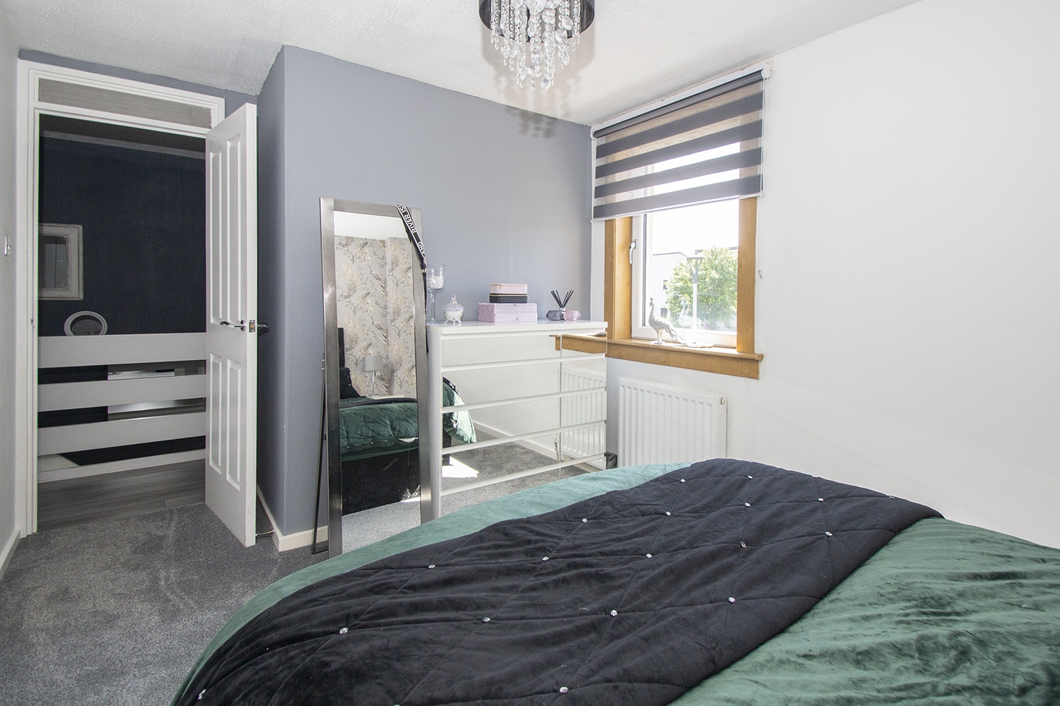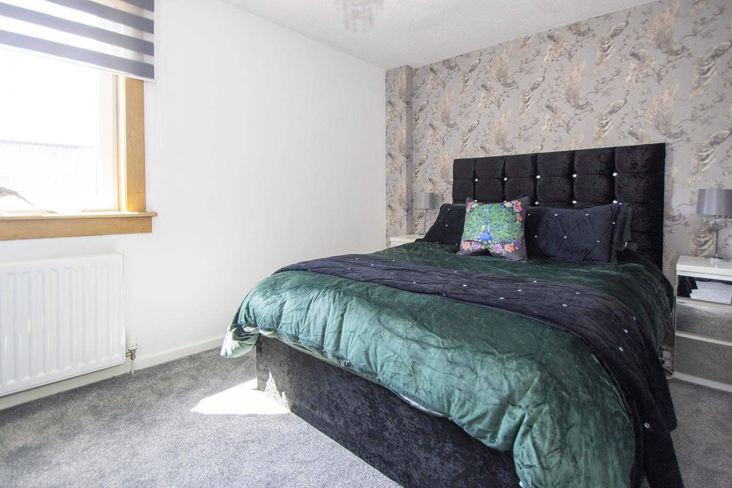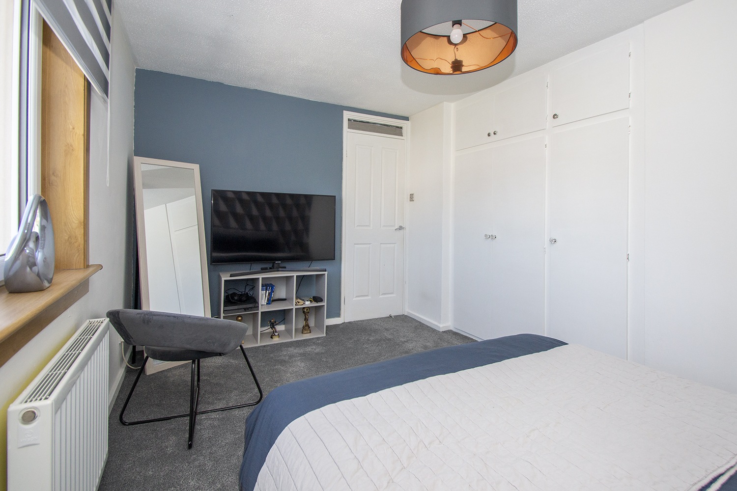Another well-proportioned rear facing bedroom with modern decor. Fitted storage cupboards. Ample power points.