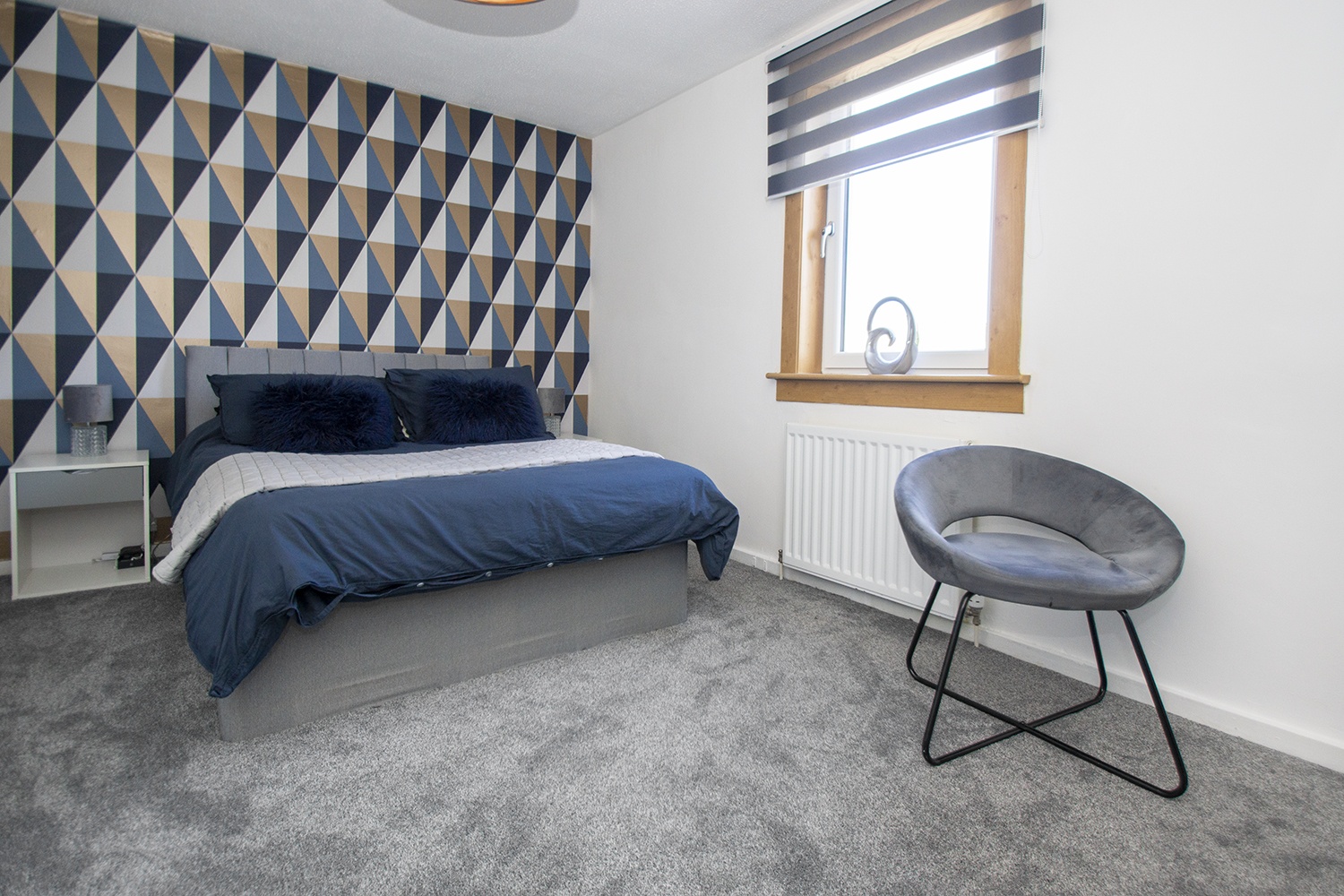 Good sized front facing bedroom with modern decor. Great storage from wardrobe area. Ample power points.