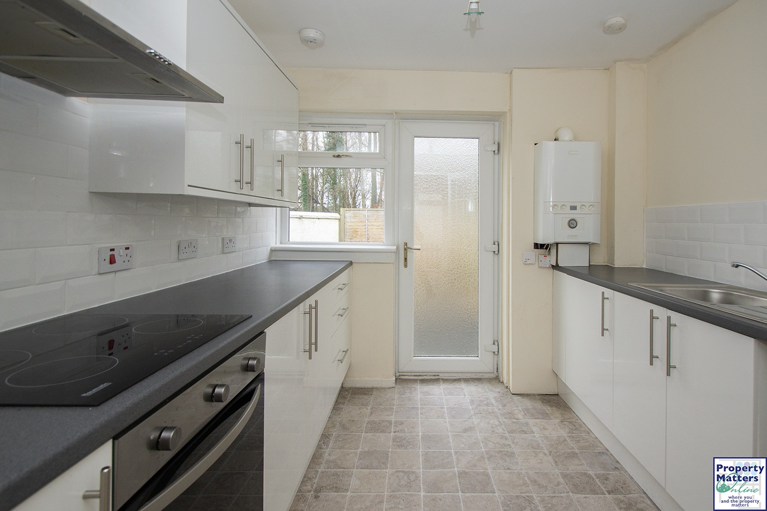 The accommodation is formed over two levels with the lower level comprising entrance hallway with storage cupboards, rear facing lounge with ceiling large floor to ceiling window which allows and abundance of natural light to flow through and archway which leads to the front facing dining room. Rear facing fitted kitchen which houses an ample range of base and wall units with complementary worktops and tiled splash-back areas, and integrated electric oven, hob and extractor hood. The upper-level accommodation houses the two double bedrooms and three-piece family bathroom.