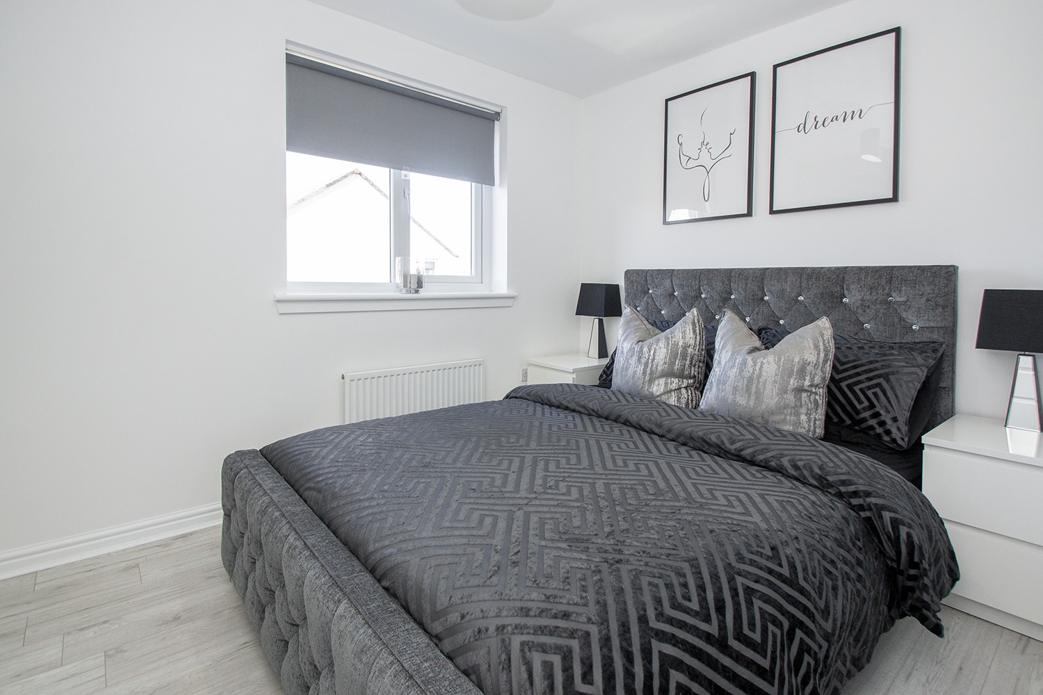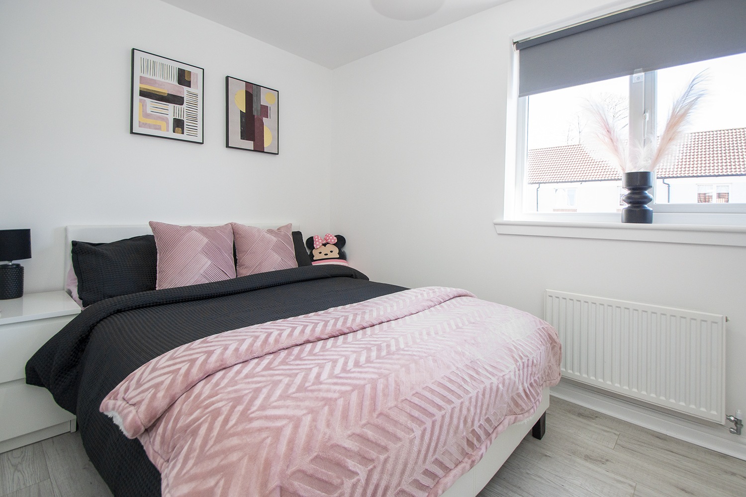 Spacious front facing bedroom with modern neutral décor. Laminate flooring. Storage cupboard Ample power points. Radiator.