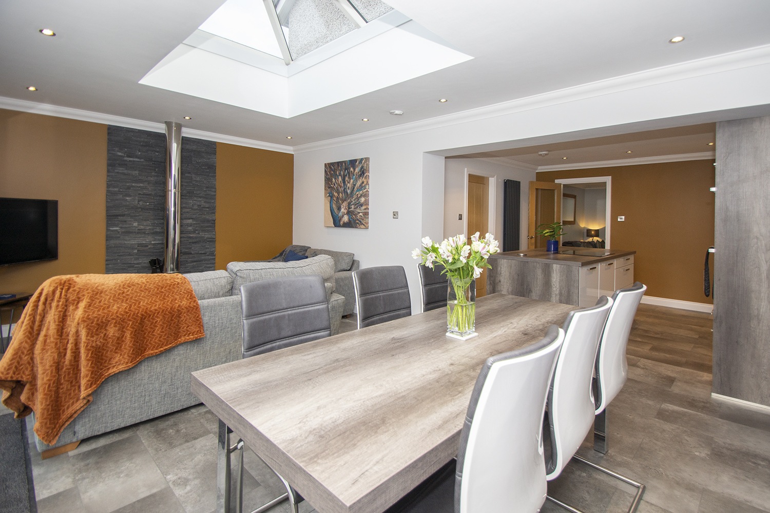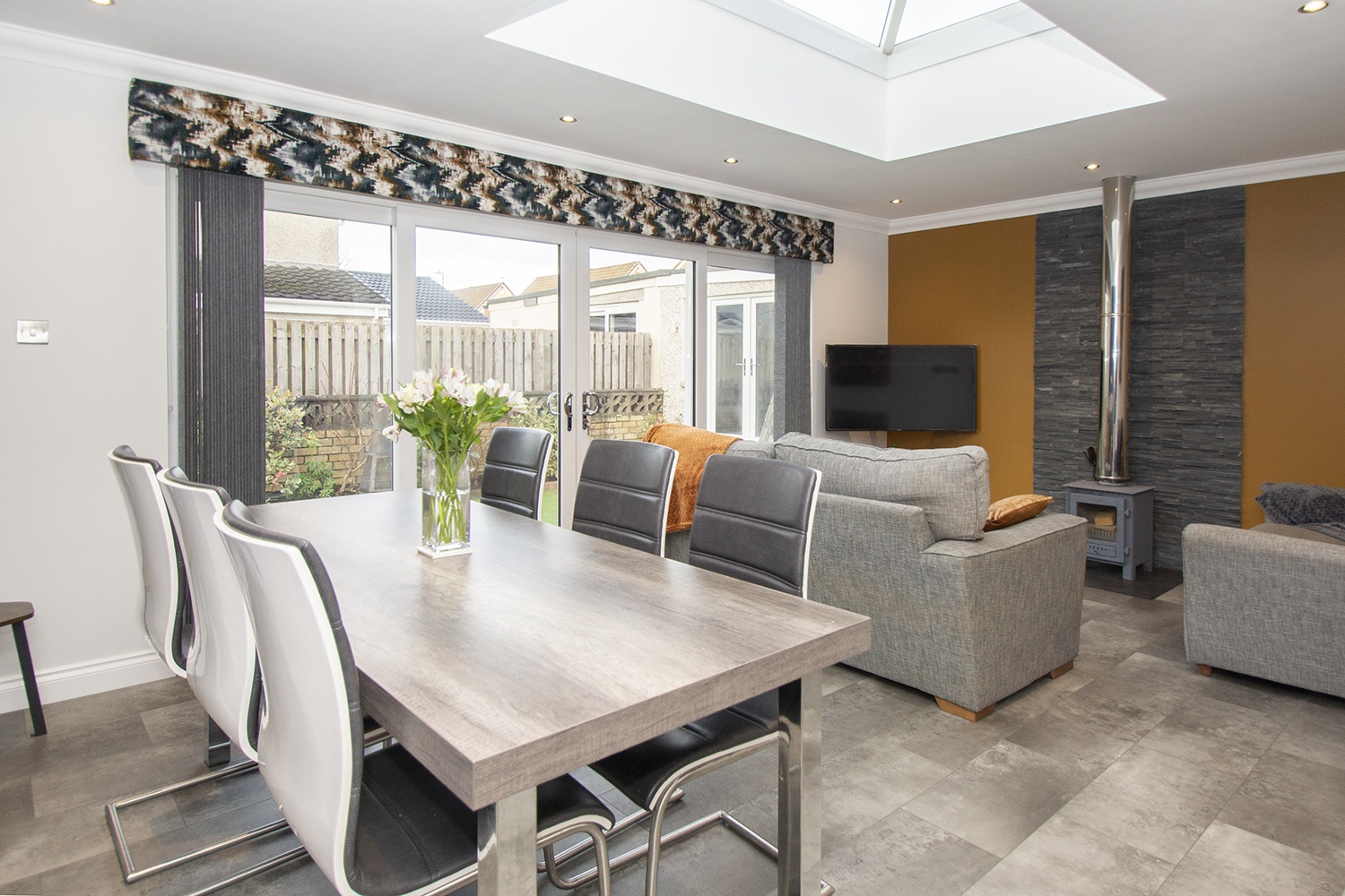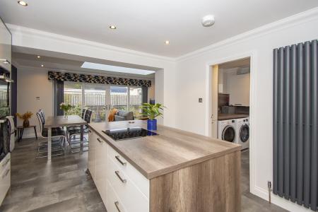 This immaculately presented family home has been upgraded to a high standard throughout by the current owners and is formed over two levels with the lower level comprising welcoming entrance hallway which gives access to the three-piece shower room and well-proportioned lounge with front facing outlook. Contemporary fitted kitchen which houses an ample range of base and wall units as well as a centre island with houses the integrated induction hob. The kitchen benefits from integrated appliances which include fridge freezer, double oven, and dishwasher. To the rear of the kitchen is the versatile open plan family / dining room with feature wood burning stove, skylight and patio doors which open to the rear and allow an abundance of natural light to flow through. The upper-level accommodation houses the three double bedrooms, two of which have large, fitted wardrobes and the other a built-in storage cupboard. Three-piece family bathroom comprising wc, wash hand basin with LED digital mirror above, and bath with overhead thermostatic rain shower. The property is further enhanced by a large versatile outbuilding to the rear with power and lighting.