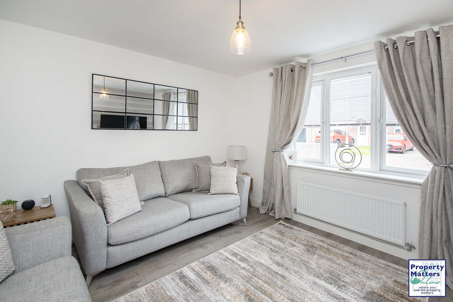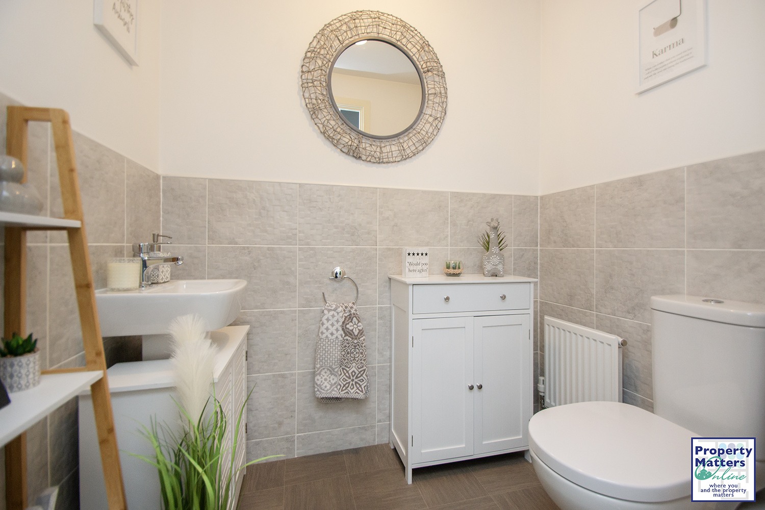 Upon entering, you are greeted by a bright and welcoming entrance hallway that provides access to all of the downstairs living areas. The hallway also features a storage cupboard under the stairs and a convenient downstairs WC, fitted with a two-piece suite. To the front of the property, the spacious lounge is bathed in natural light from large windows, creating a warm and inviting atmosphere.