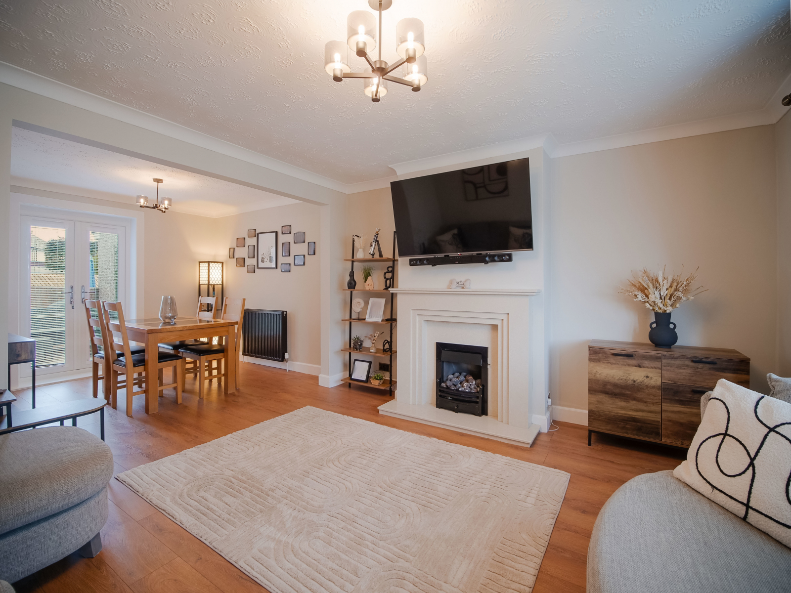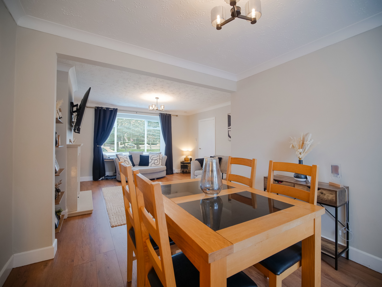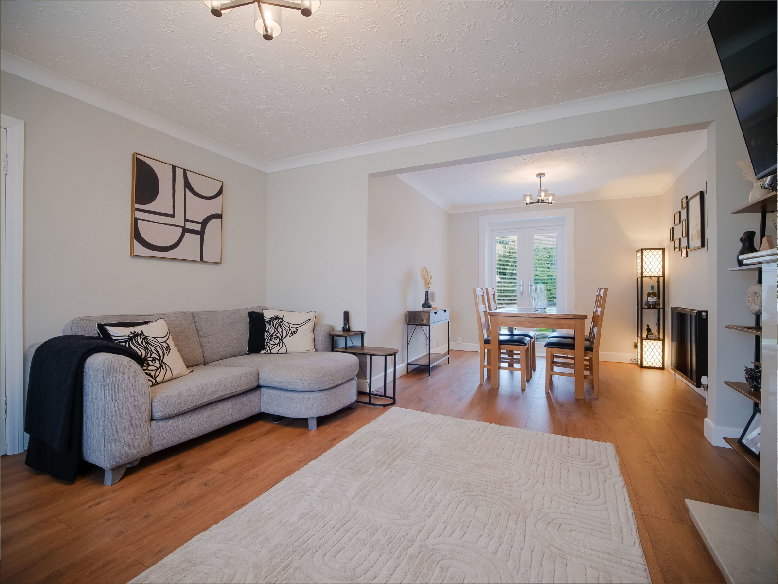 - Open plan flow to dining room with French doors to raised decking