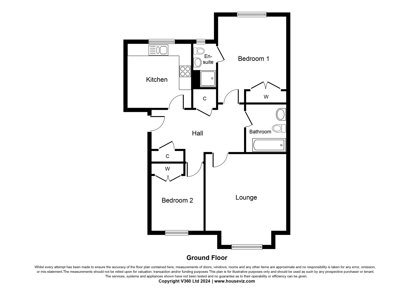 The property is entered through the secure entry system into well maintained close, inside there is a good-sized hall with two storage cupboards, the lounge is to the rear of the property with feature limestone fireplace and French doors giving an abundance of natural light. Quality fitted kitchen which houses an ample range of base and wall units with complementary worktops and splashbacks, gas hob with electric oven and extractor, integrated appliances including dishwasher and fridge freezer, plumbing for automatic washing machine. The main bedroom has its own en-suite shower room and fitted wardrobes, bedroom two also has fitted wardrobes. The bathroom is fully tiled and consists of three-piece suite including w.c, wash hand basin and bath with shower attachment.