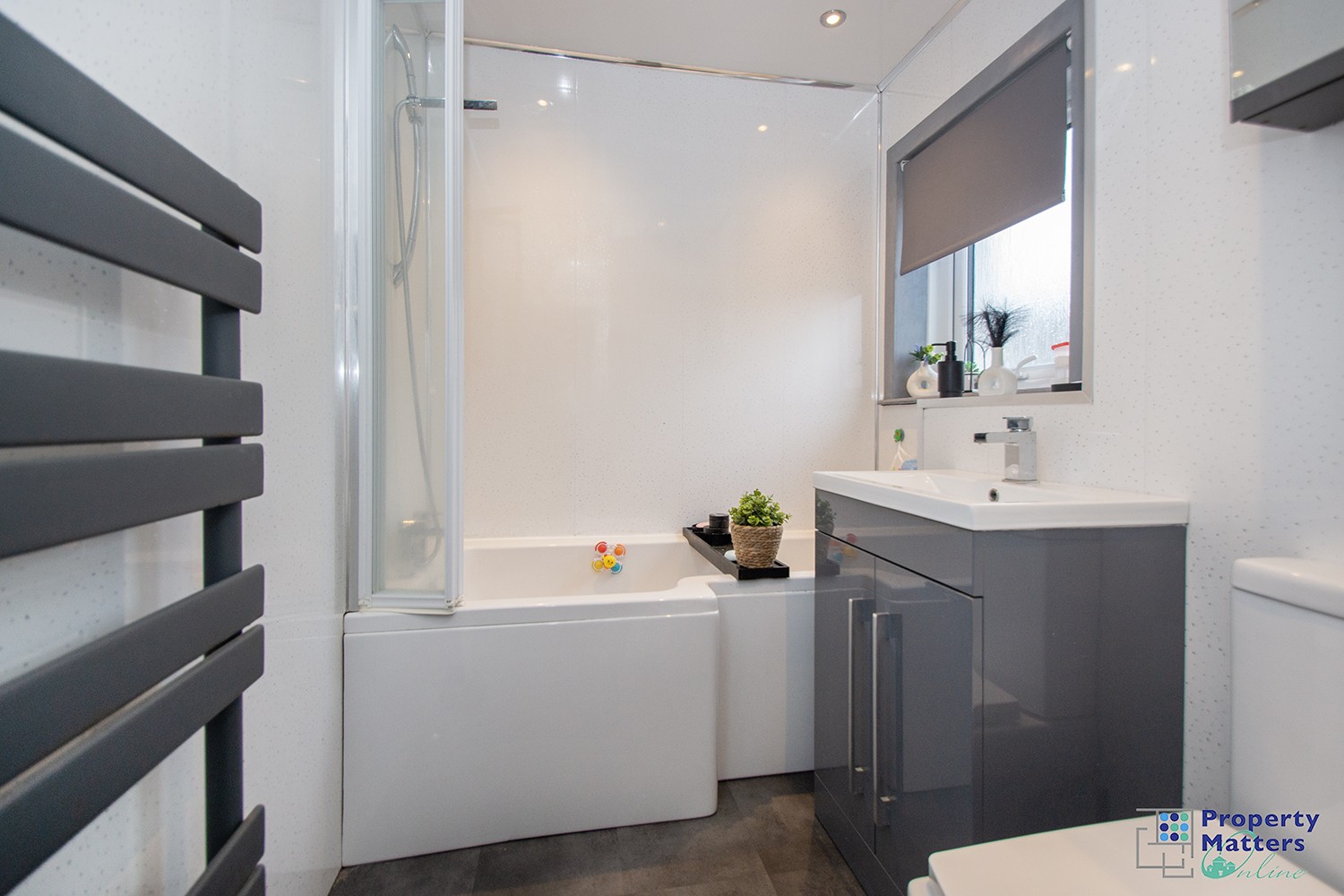 - Contemporary three piece family bathroom with thermostatic shower
