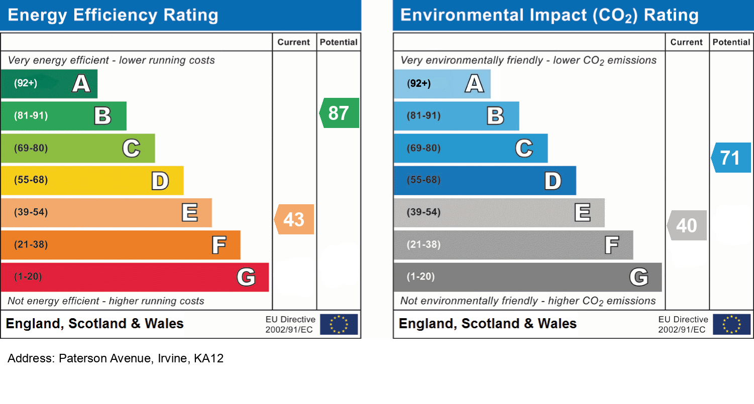Paterson Avenue is set within a quiet, well-established area of Irvine, popular with families and commuters alike. The property is conveniently located close to local primary and secondary schools, shops, and excellent transport links, including easy access to Irvine town centre, major road networks, and nearby leisure facilities.