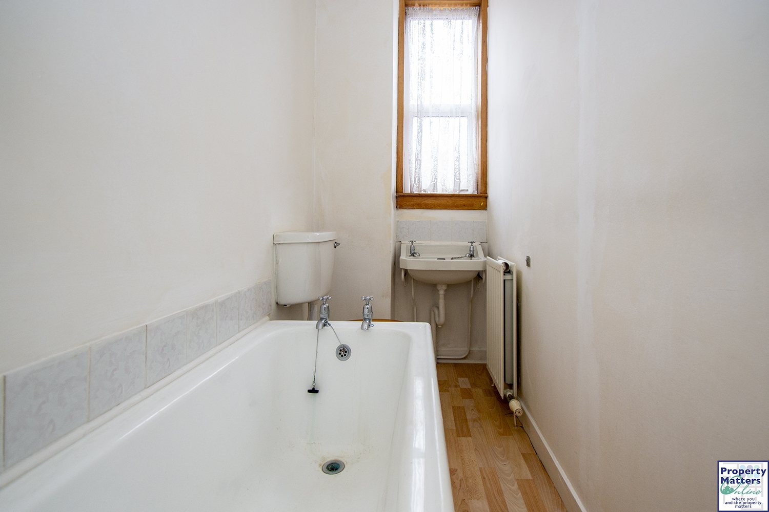 family bathroom comprising wc, wash hand basin and bath.