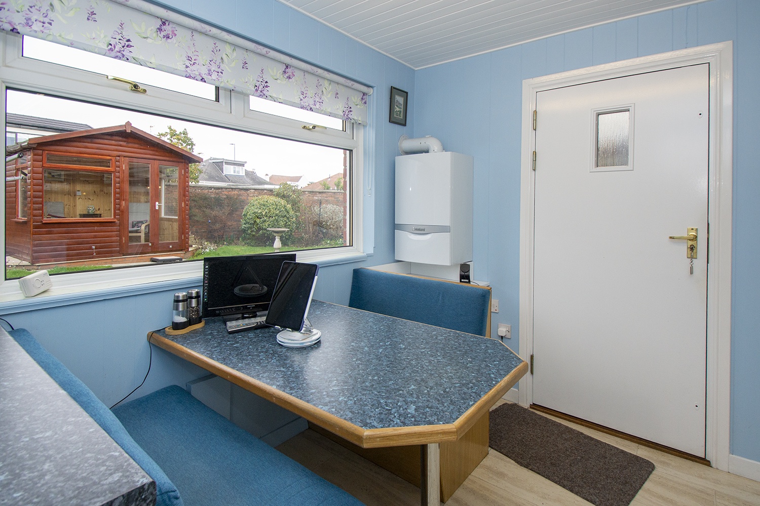 The flexible accommodation comprises: ground floor: entrance vestibule; large lounge with feature fireplace; kitchen/dining room housing ample range of base and wall units and complementary worktops and tiled splash back areas, integrated hob and oven and dining area leading to a handy utility with plumbing for washing machine. Off the utility is the first bathroom comprising of w.c, wash hand basin and tub bath; there is also a lean to drying area off the utility. From the kitchen dining area is a bright spacious conservatory looking out to the rear garden. Also on the lower level there a sitting room/dining room that can also be used a bedroom; home office large front facing bedroom comprising of a bay window which allows an abundance of natural light to flow through; three piece family bathroom comprising of w.c, wash hand basin and bath with over- head shower.