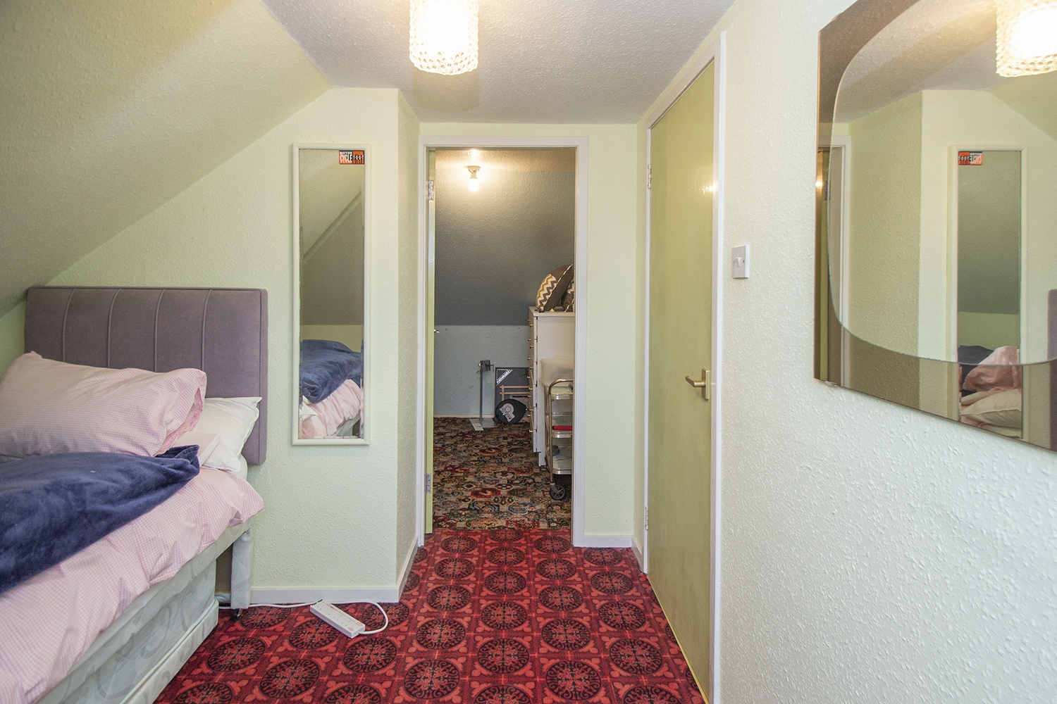 The extended upper level comprising of a large spacious bedroom with handy en- suite cloakroom; further rear facing bedroom with large walk in study area.