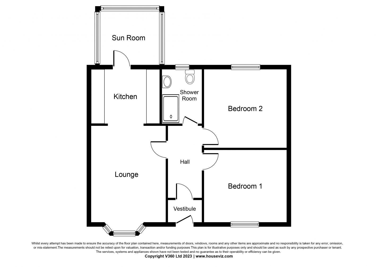 The accommodation is presented in walk-in condition throughout and comprises entrance vestibule which leads to the welcoming entrance hallway. Well-proportioned front facing lounge with feature front facing bay window and an open archway to the rear which leads to the kitchen. The kitchen houses an ample range of base and wall units with complementary worktops and splash-back areas, integrated electric oven hob and extractor hood, and glazed UPVC which gives access to the rear sunroom. Front and rear facing double bedrooms. Three-piece shower room comprising wc, wash hand basin and shower cubicle with thermostatic shower.
