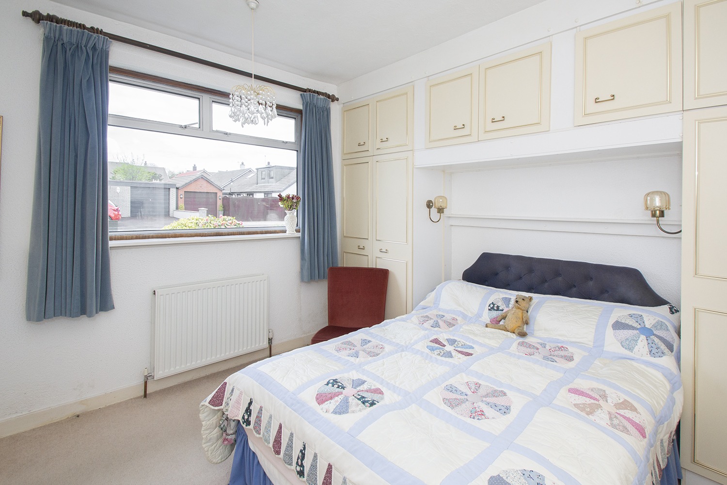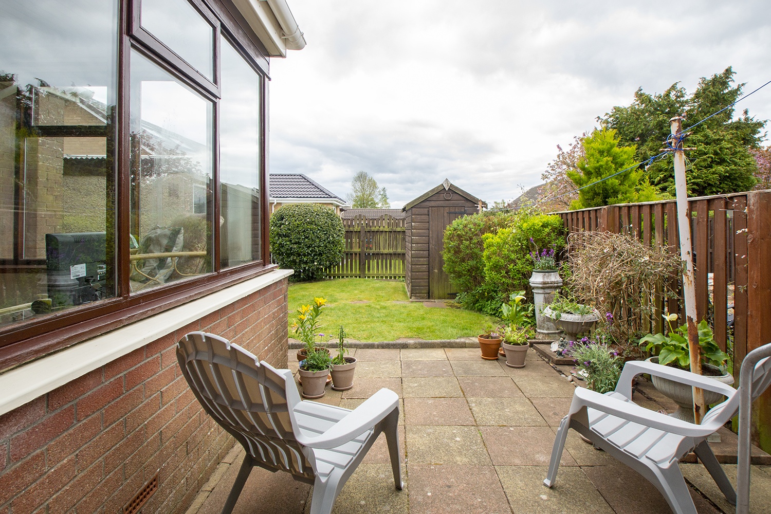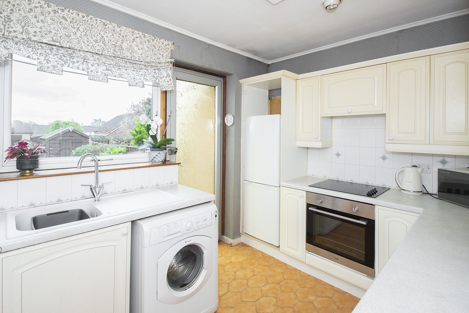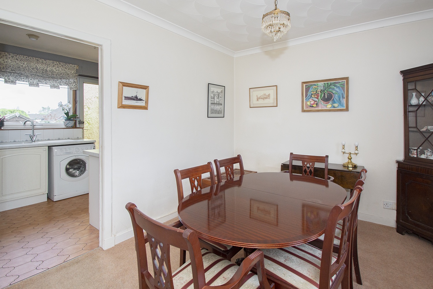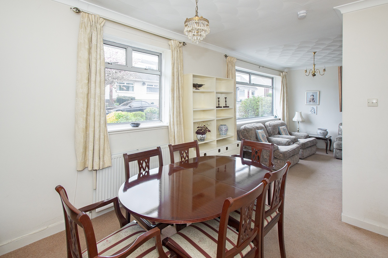 This spacious accommodation is laid out over one level comprising entrance hallway; side facing lounge with open plan dining room; patio doors from the lounge give access to the rear sunroom. Fitted kitchen housing an ample range of base and wall units with complementary tiled splash-back areas, integrated electric oven and hob. Two well-proportioned front facing double bedrooms with fitted wardrobes. Three piece family bathroom comprising vanity unit, which houses the wc,and wash hand basin, and bath.