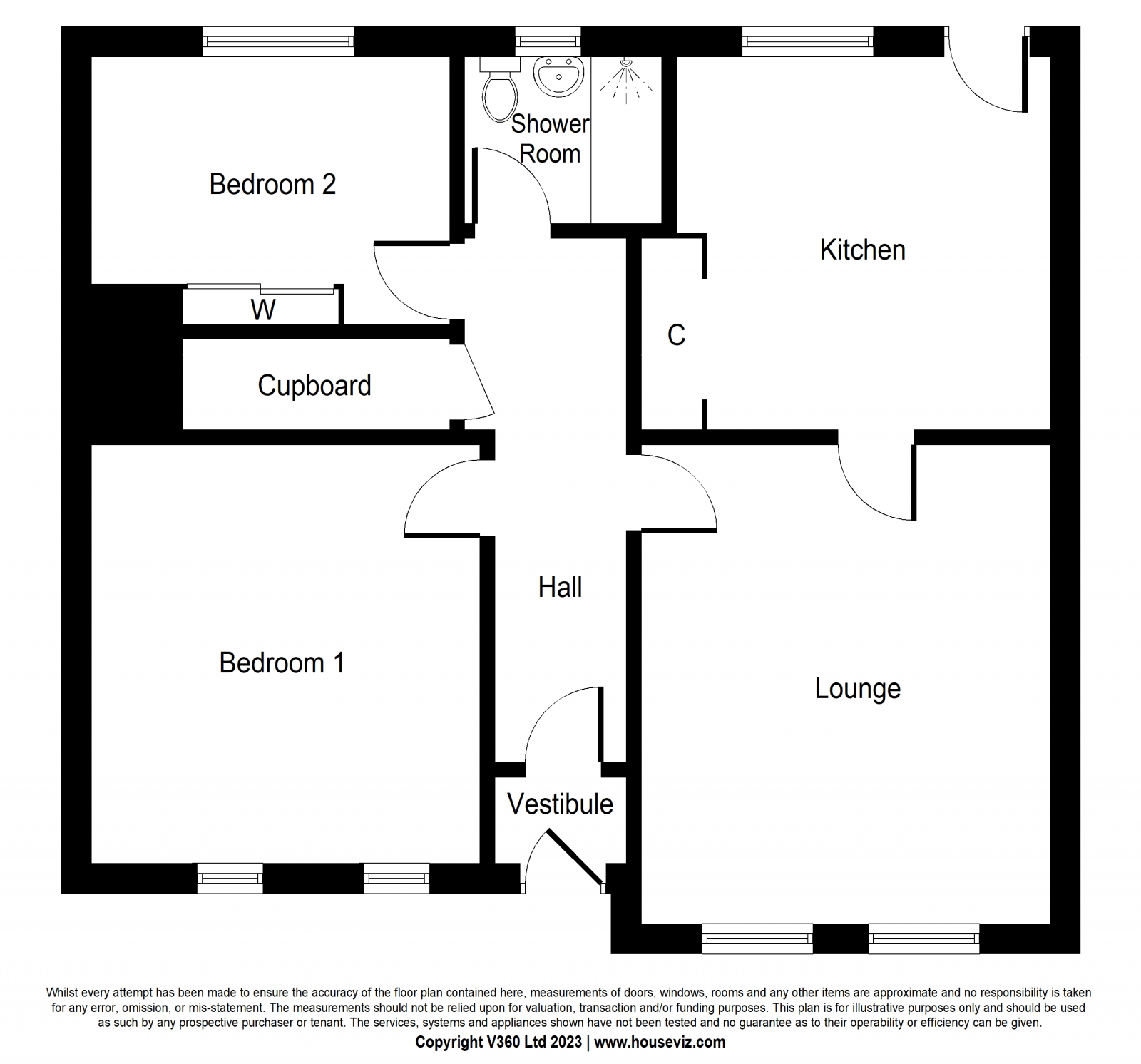 The accommodation is presented in walk-in condition throughout and comprises of welcoming entrance hallway; well-proportioned front facing lounge; fitted kitchen housing an ample range of base and wall units with complementary worktops, tiled splash back areas, upvc door giving access to the enclosed garden. Front facing double bedroom; rear facing double bedroom with built in wardrobes. Three piece family bathroom comprising of wc, wash hand basin and shower cubicle.