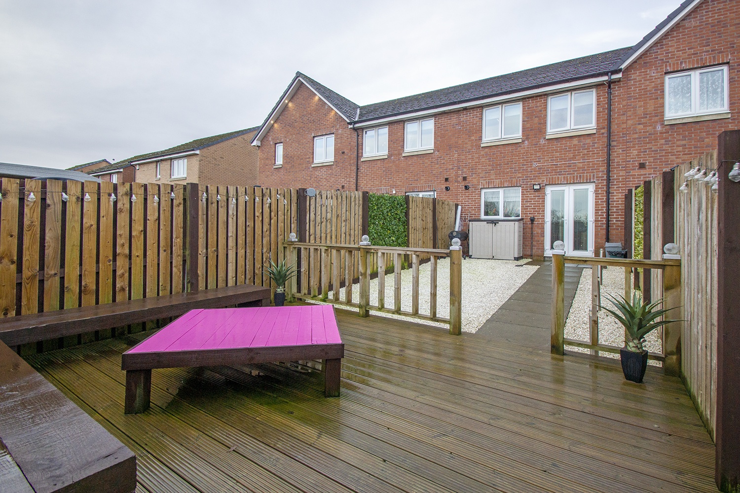 Off-street parking is provided to the front of the property with driveway and chipped garden area. The rear garden is fully enclosed with large decking area and mainly chipped area designed for ease of maintenance. Feature lighting. This is an ideal spot for relaxation and entertainment.
