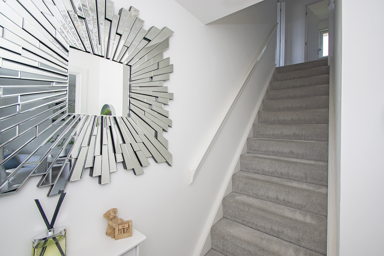 Accessed via double glazed door into entrance hallway with door giving access to lounge and carpeted staircase to upper level.