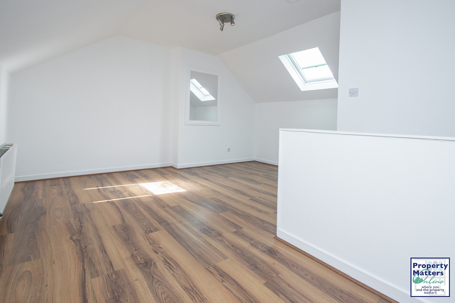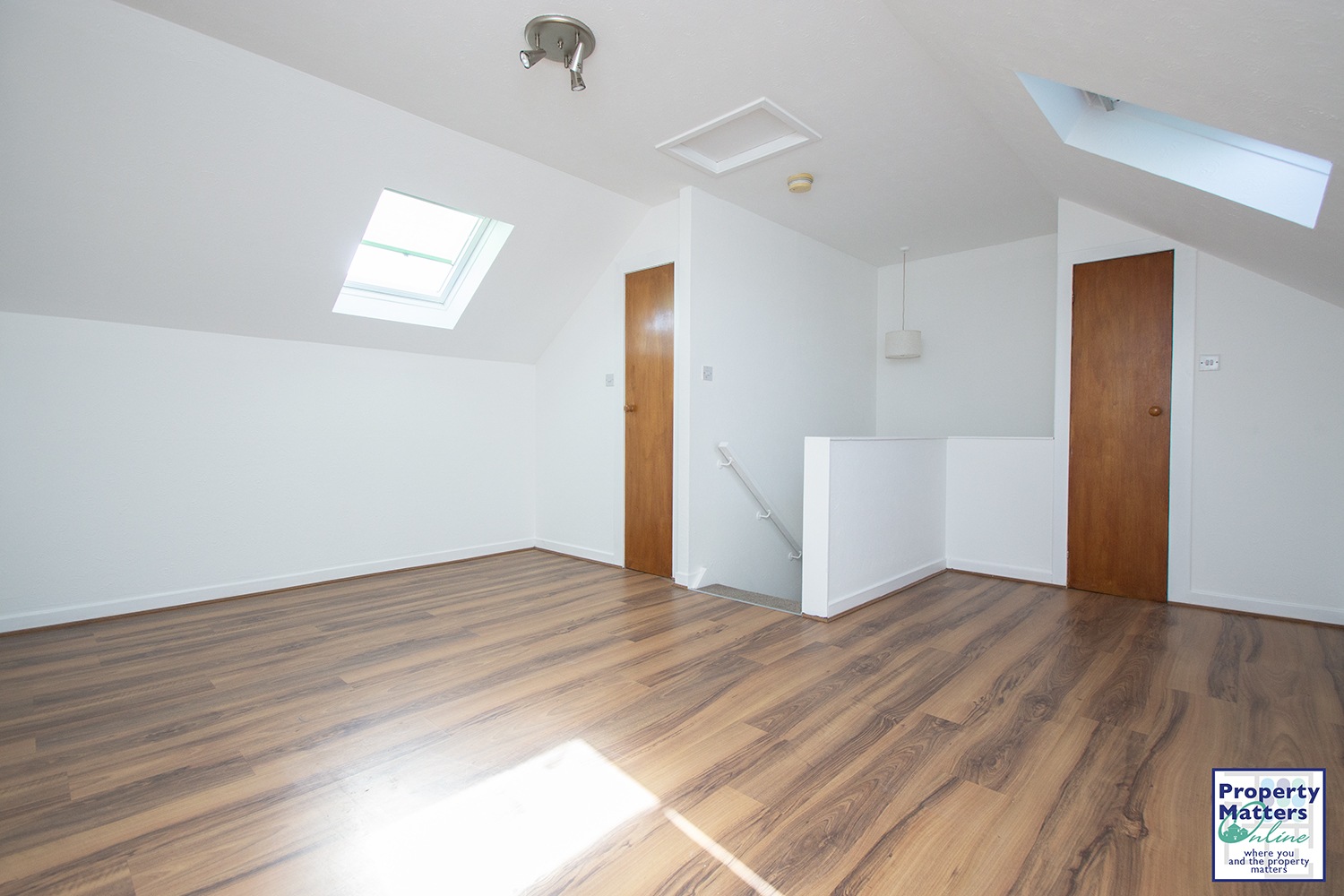 Upstairs, the converted loft area features a second large double bedroom, enhanced by built-in storage cupboards – ideal for use as a principal bedroom or a flexible work-from-home space.