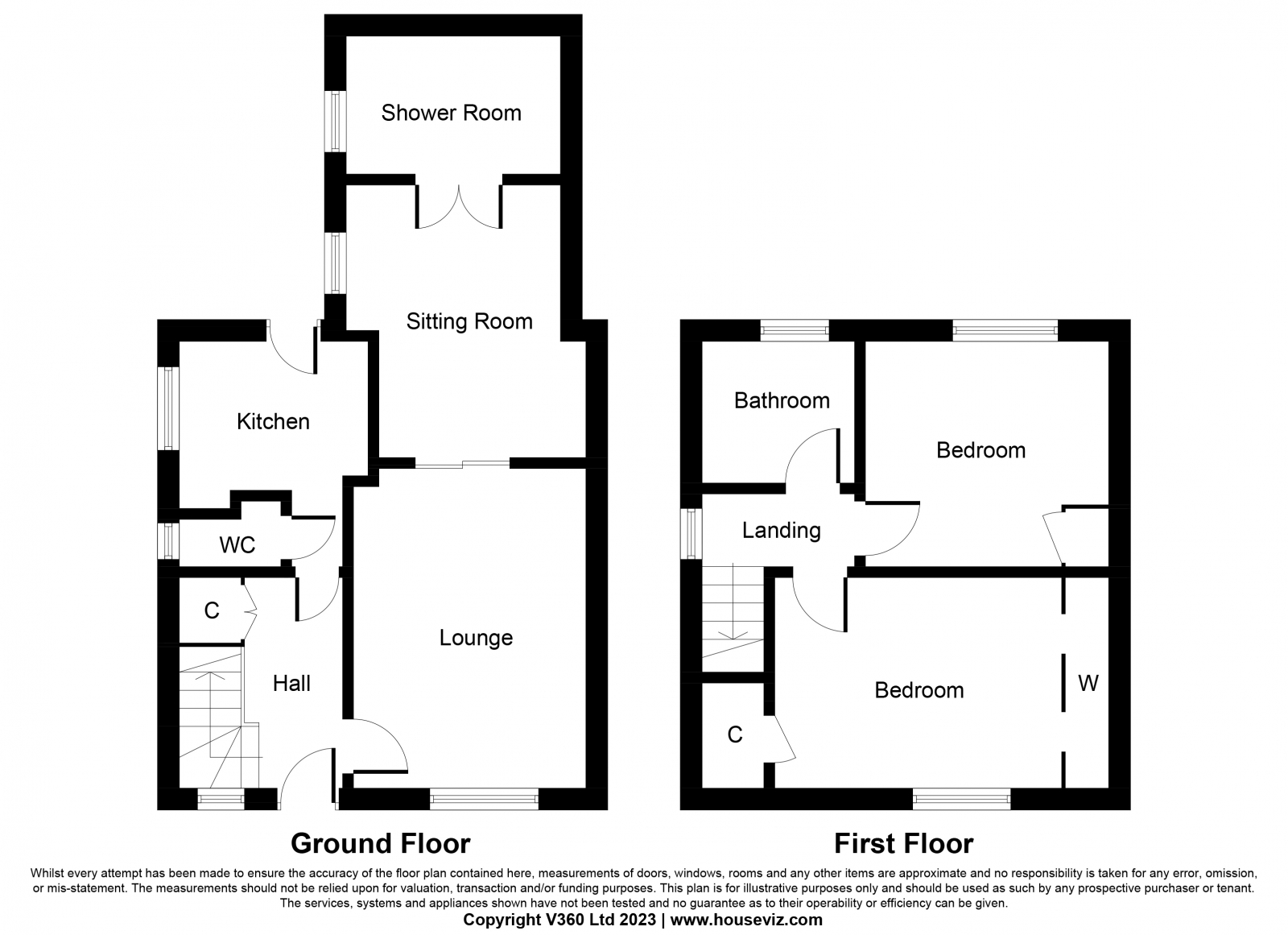 The accommodation is formed over two levels, with the lower level comprising entrance hallway with under-stairs storage, two-piece cloakroom, spacious front facing lounge with sliding doors which open to the sitting room which in turn gives access to the three-piece shower room comprising wc, vanity unit housing the wash hand basin and walk-in shower cubicle. Fitted kitchen housing an ample range of base and wall units with complementary worktops and tiled splash-back areas, and rear door giving access to the garden. The upper-level accommodation houses the two well-proportioned double bedroom with storage. Modern three-piece family bathroom comprising corner bath and vanity unit which houses the wc and wash hand basin.
