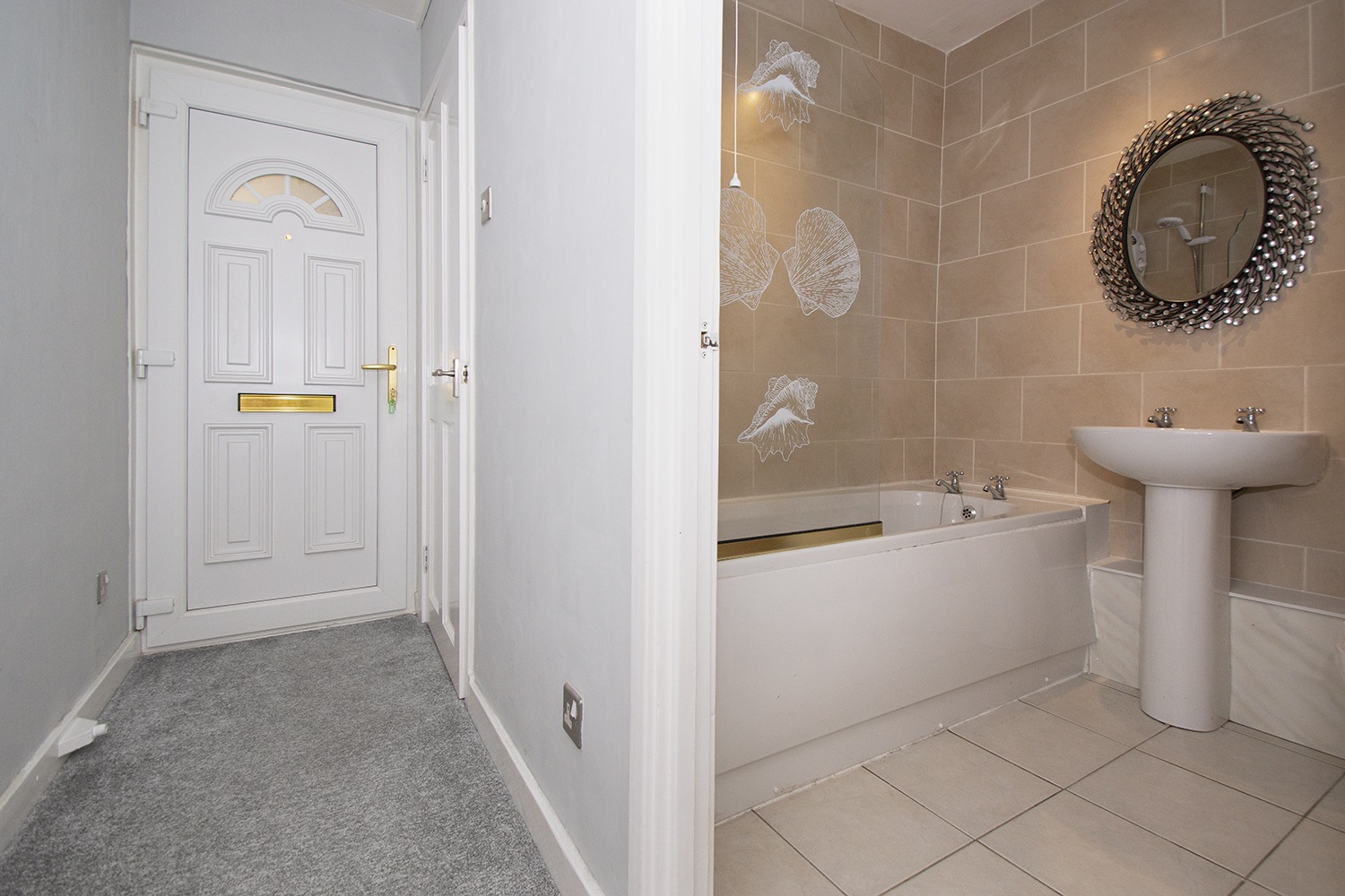 This well-presented accommodation comprises secure door entry to entrance close, double glazed door into hall with two handy storage cupboard (one walk in), and access to most compartments, access the well-proportioned lounge with front facing windows and side window allowing an abundance of natural light to flow through. Door leading to kitchen which houses an ample range of quality wall and base units with complementary worktops, tiled splash-back areas, four gas burner cooker with hood and handy storage cupboard. The property has front facing double bedroom with fitted wardrobes and a large modern bathroom housing a three-piece suite comprising w.c, wash hand basin bath with electric shower over.