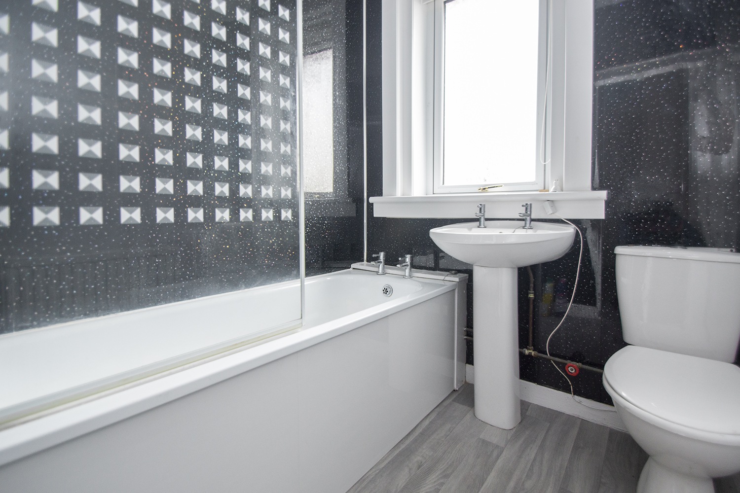 The property is in walk-in condition with fresh décor and flooring throughout, and comprises welcoming entrance hallway, bright front facing lounge with storage cupboard, feature alcove area, fire and surround. Modern fitted kitchen which houses an ample range of base and wall units with complementary worktops and tiled splash-back areas, integrated gas hob, electric oven and extractor hood. Two excellent sized double bedrooms. Modern three-piece bathroom suite compsing wc, wash hand basin and bath with overhead electric shower.