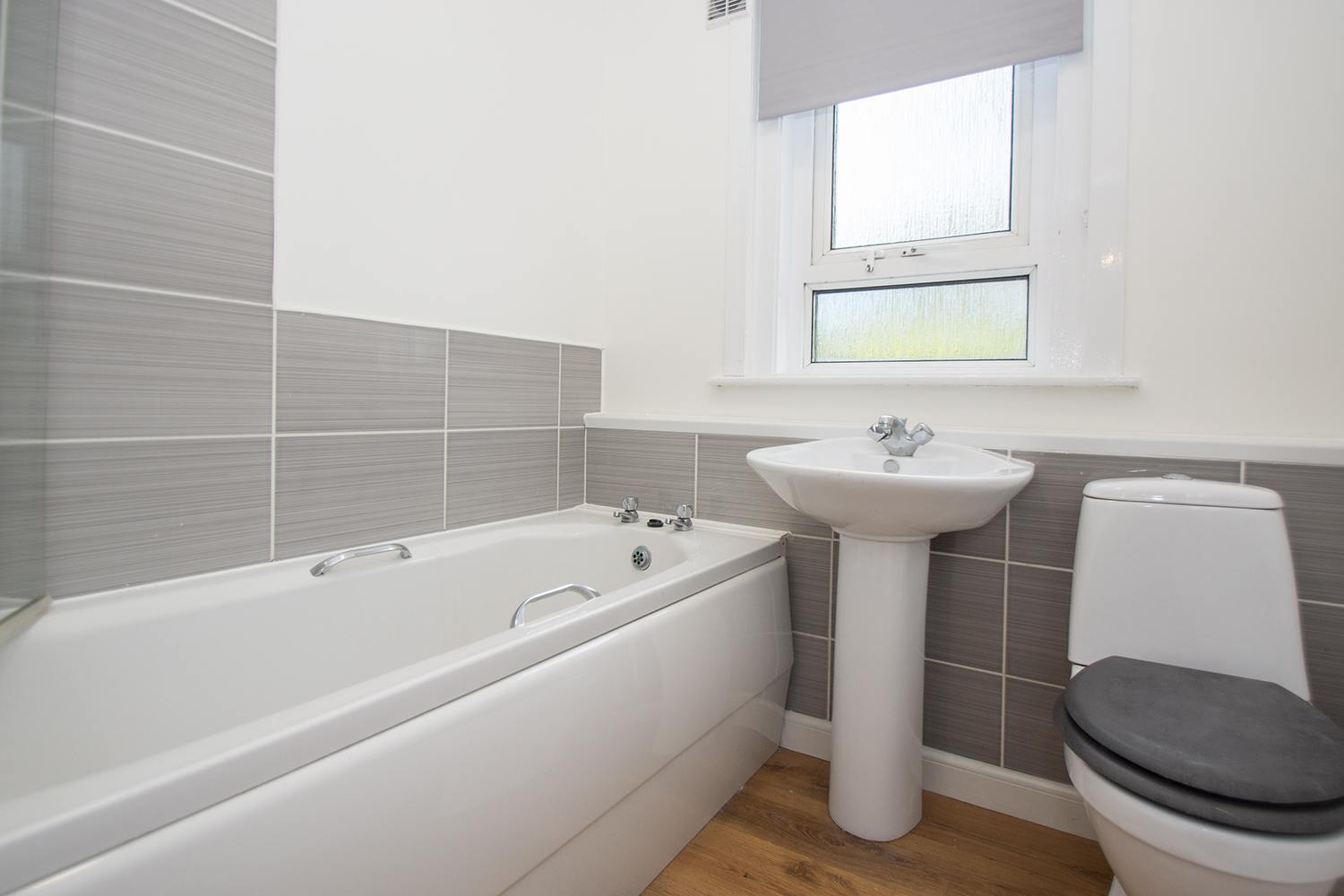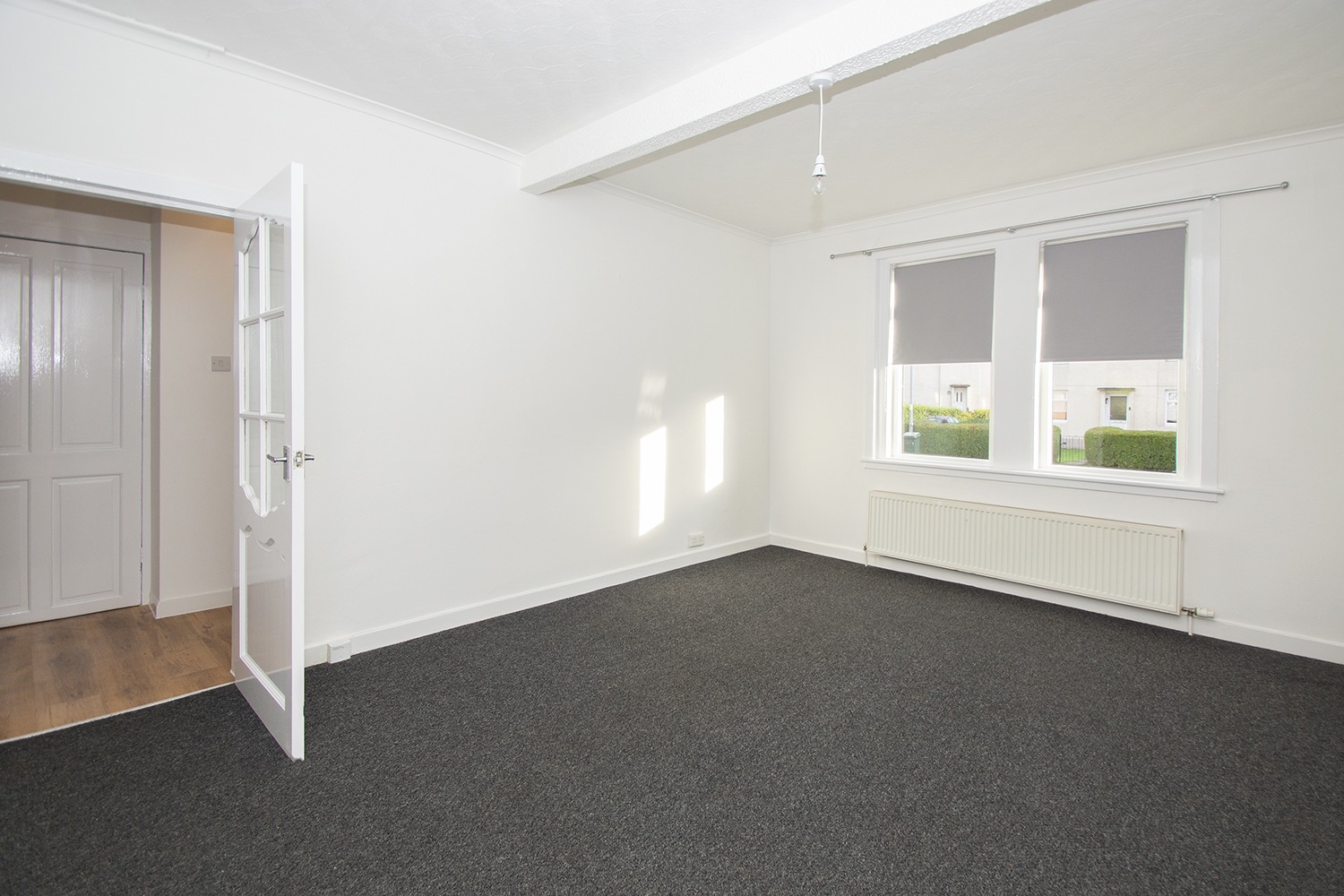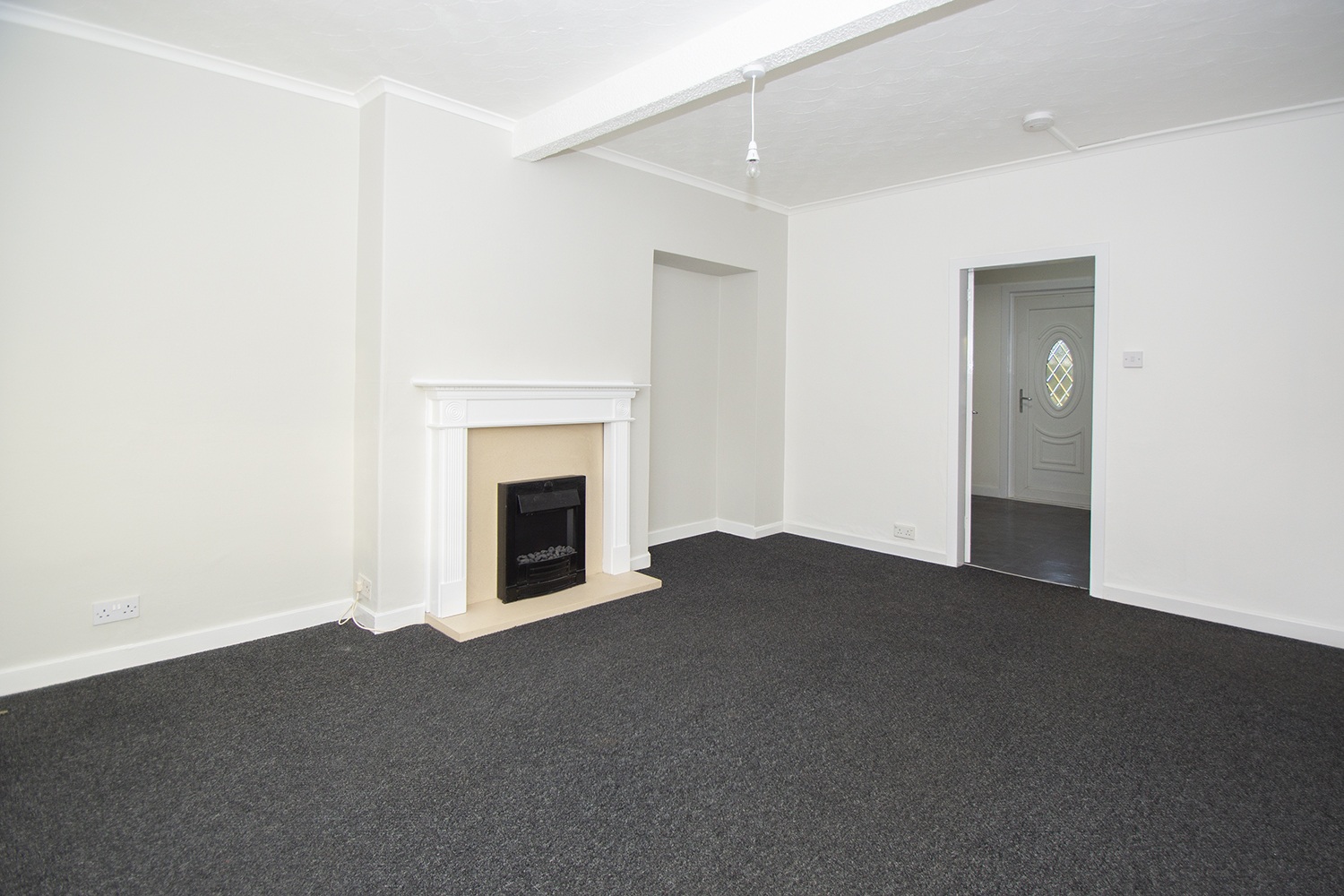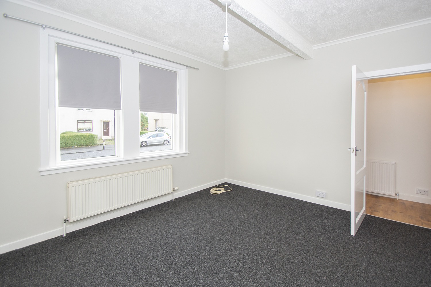 The accommodation offers spacious living throughout and comprises welcoming entrance hallway, excellent sized lounge with feature inset electric fire with surround and twin front facing windows which allow an abundance of natural light to flow through. Rear facing fitted kitchen which houses an ample range of base and wall units with complementary worktops and tiles splash-back areas, integrated gas hob, electric oven and extractor hood and rear door which gives access to the garden area. Two well-proportioned double bedrooms. Three-piece bathroom comprising wc, wash hand basin and bath with overhead electric shower, tiled splash-back areas.
