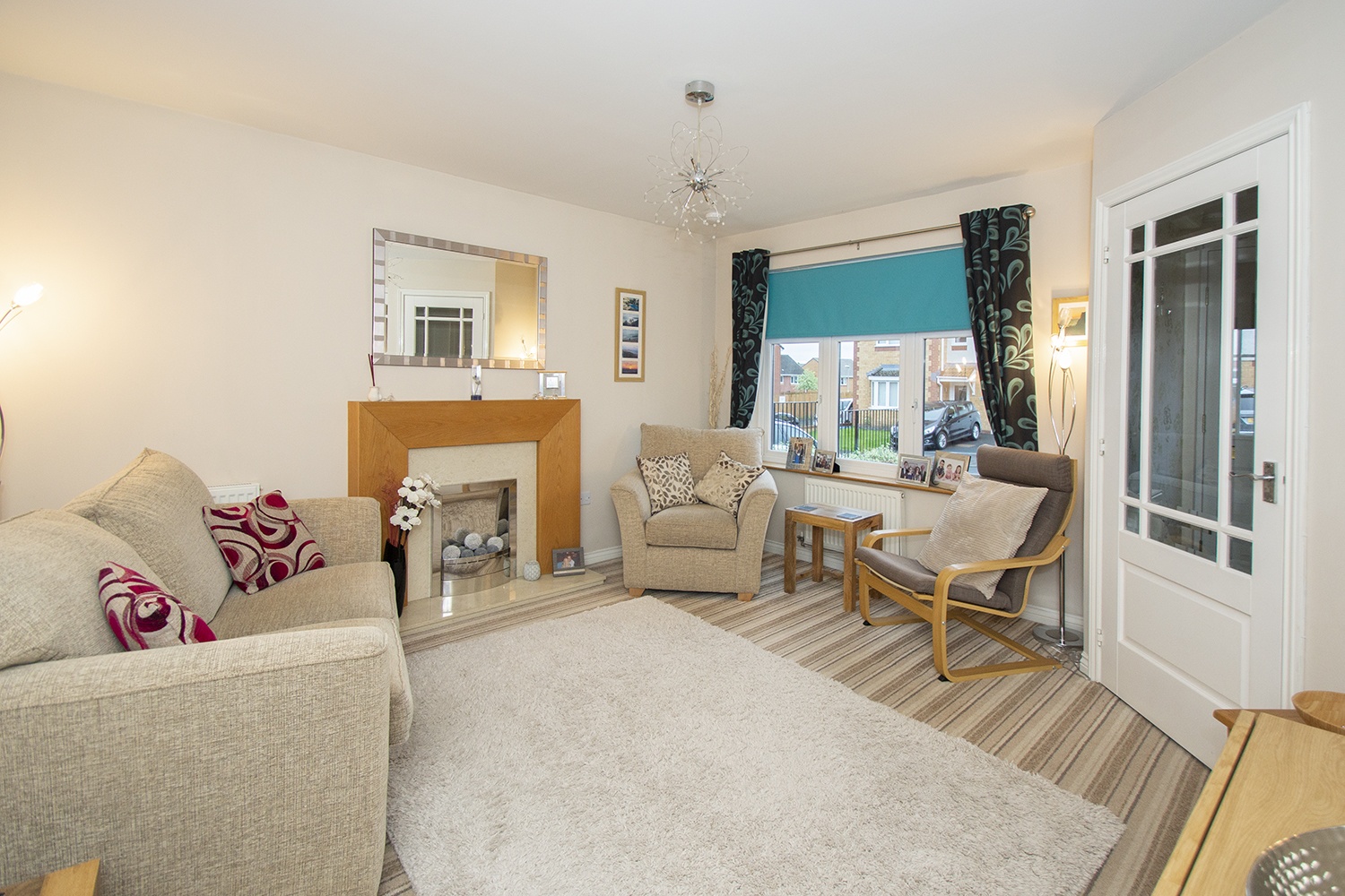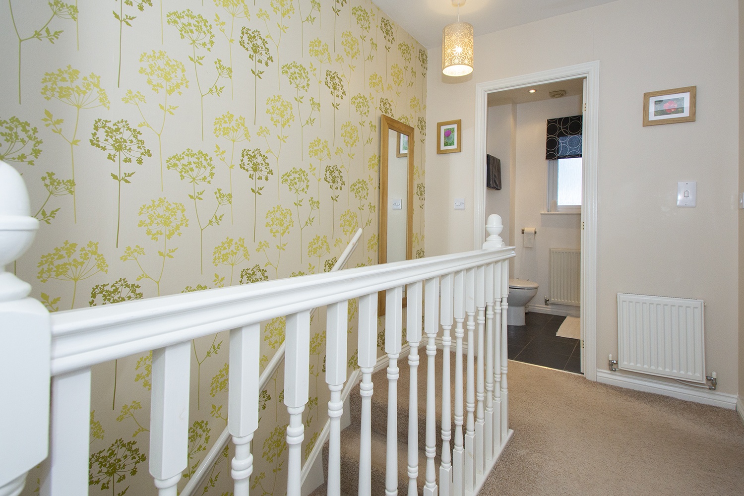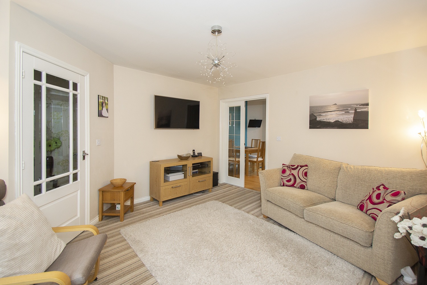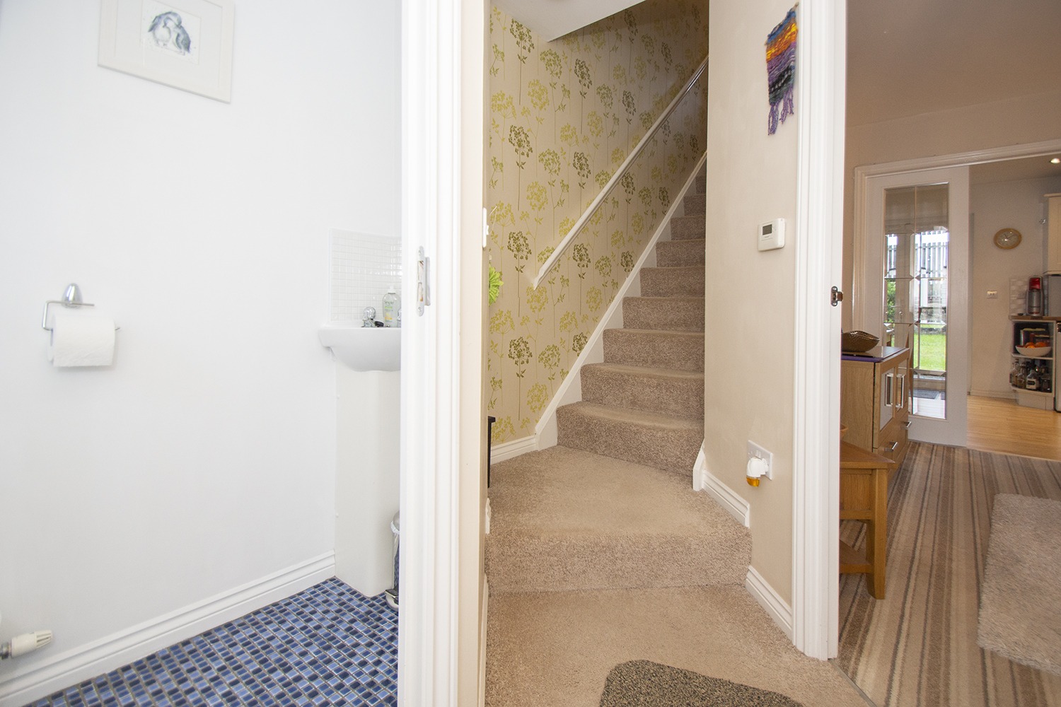 Entered via double glazed door into the entrance hallway which gives access to the lounge; downstairs cloakroom and staircase leading to the upper level accommodation. Carpeted flooring and fresh décor.