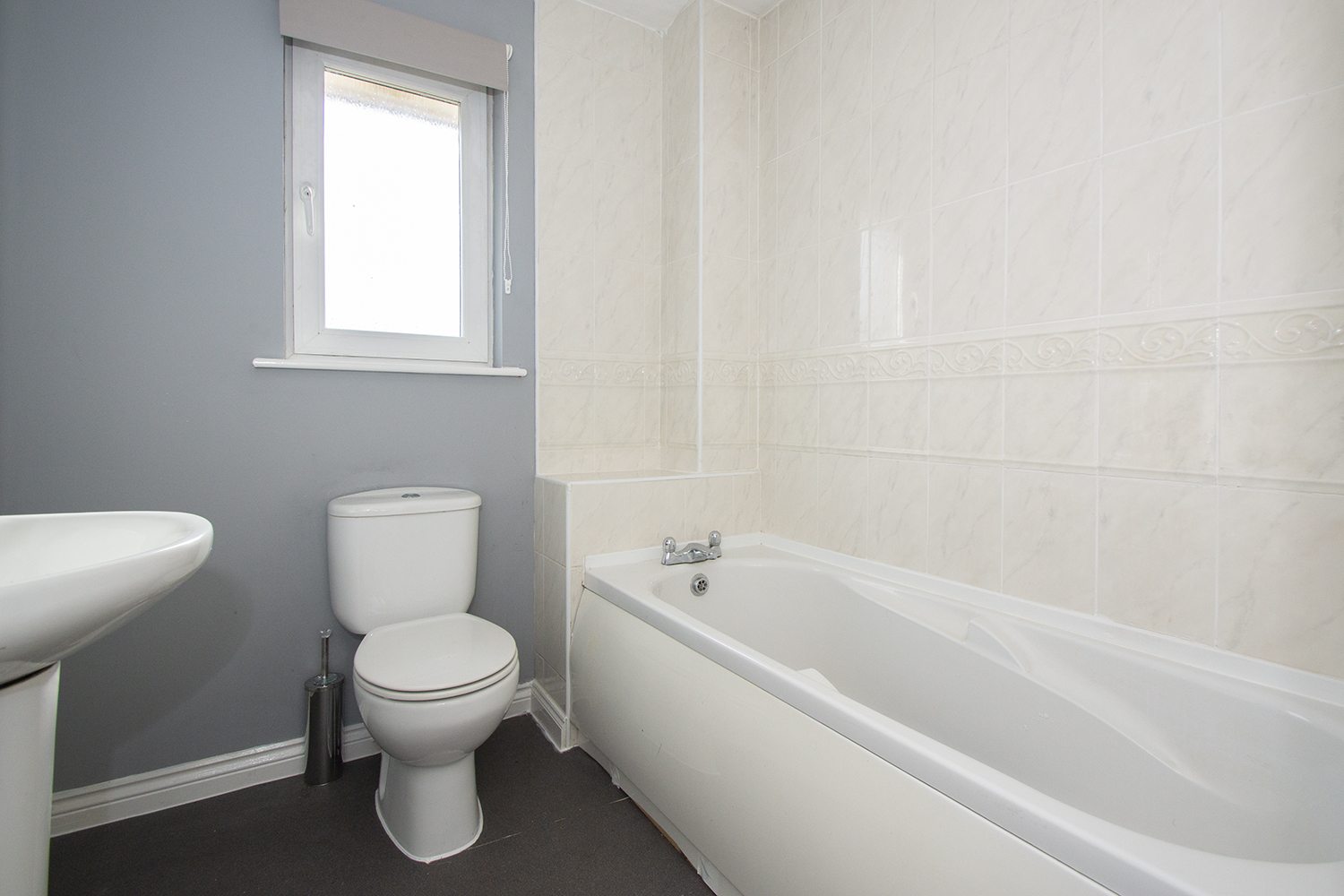 Recently refitted contemporary family bathroom with 3 piece suite comprising wc, wash hand basin and bath. Rear facing opaque window provides an abundance of natural light. Tiled splash-back areas.