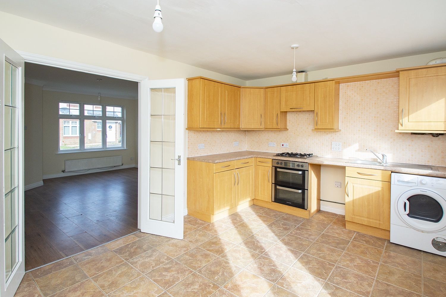 Entered from the hallway into the spacious front facing family lounge with fresh décor. Laminate flooring. Ceiling cornice. Ample power points. Twin glazed doors leading to family kitchen diner.
