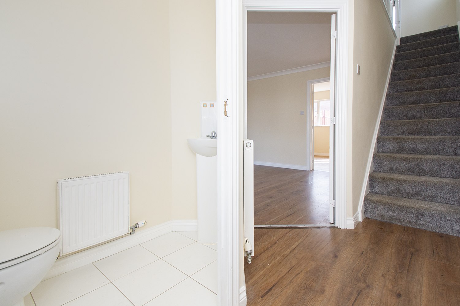 Entered from the hallway into recently refurbished downstairs wc with 2 piece suite comprising .wc. and wash hand basin. Quality flooring . Front facing opaque window.