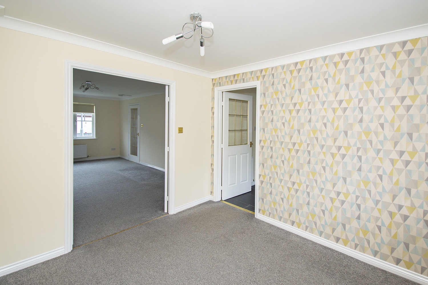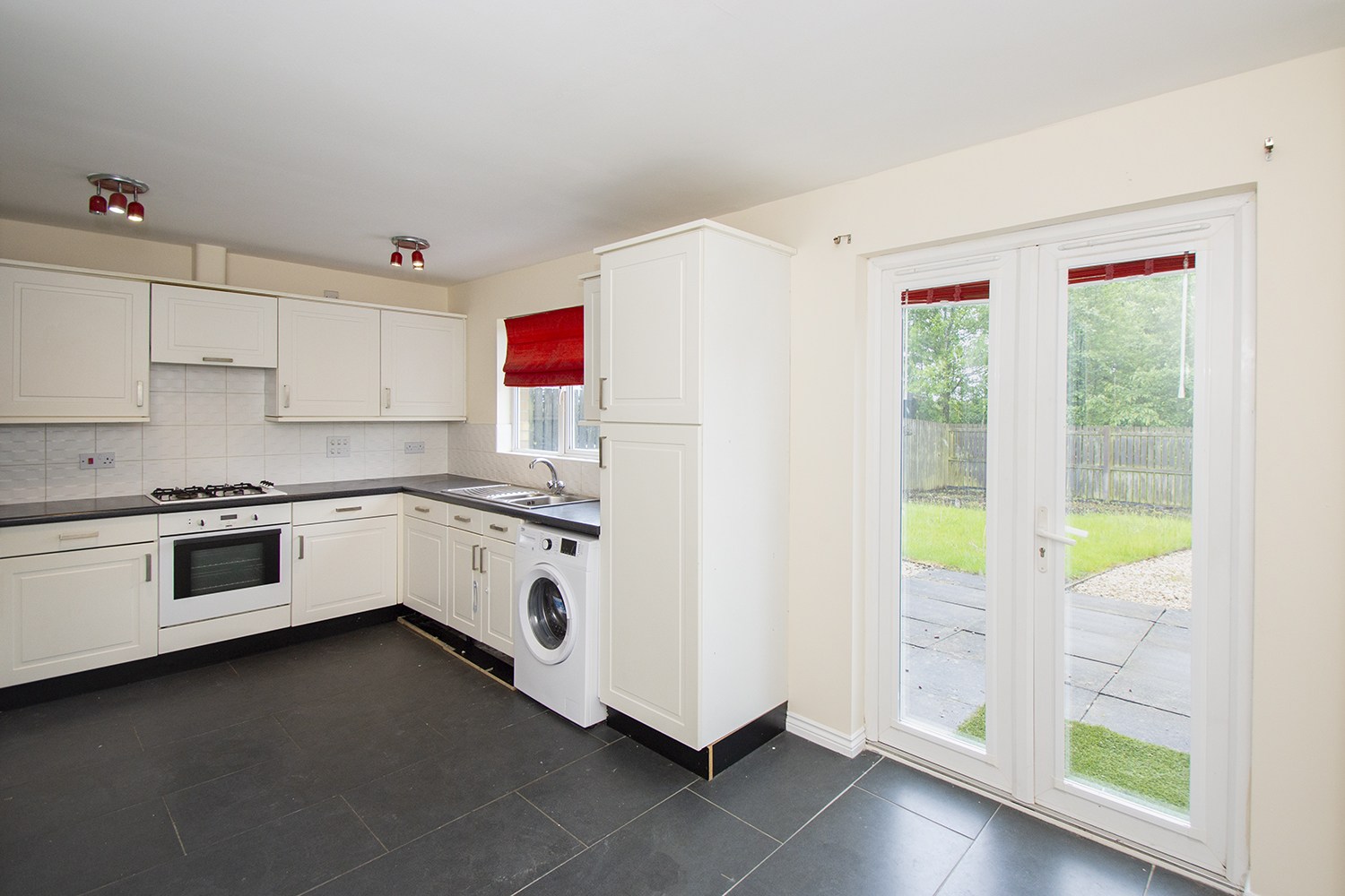 This rarely available family home is formed over two levels with the lower level comprising entrance hallway; well-proportioned lounge with French doors opening to the formal dining room. The kitchen/diner which can be accessed from both the hall and the dining room is one of the attractions of this property, once more we have a spacious and bright room which in addition to a rear facing window also benefits from French doors leading from the diner to the well-maintained rear garden; the white décor continues in this room with it being equipped with ample floor and wall units finished in white wood effect with dark contrasting work tops, the gas hob, electric oven and hood are integral as is the fridge/freezer, this room forms the focal point of the property with the French doors allowing the rear garden to be a welcome and pleasing extension to the inside. The ground floor also benefits from the convenience of a w/c.