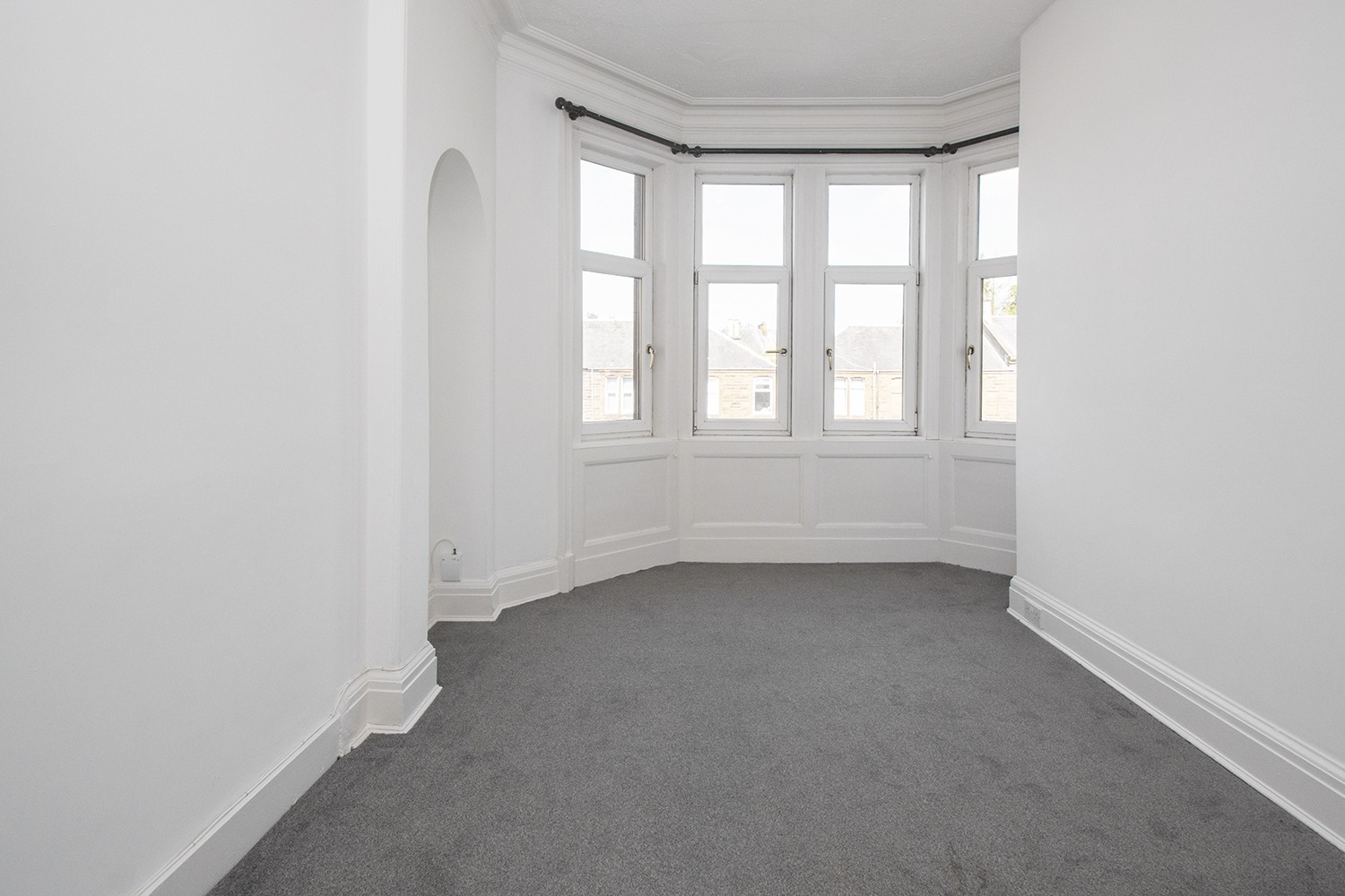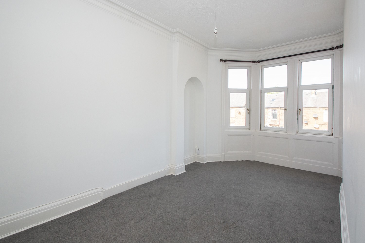 The property is ideally located minutes from Kilmarnock Town Centre and M77 motorway link. The accommodation comprises entrance hallway with large storage cupboard, rear facing lounge with feature alcove area. Fitted kitchen which houses an ample range of base and wall units with complementary worktops and tiled splash-back areas, integrated electric hob, oven and extractor hood, plumbing for automatic washing machine. Excellent sized master bedroom with feature front facing bay window and alcove area and Well-proportioned second bedroom with single front window. Three-piece family bathroom comprising wc, wash hand basin and bath with thermostatic shower mixer.
