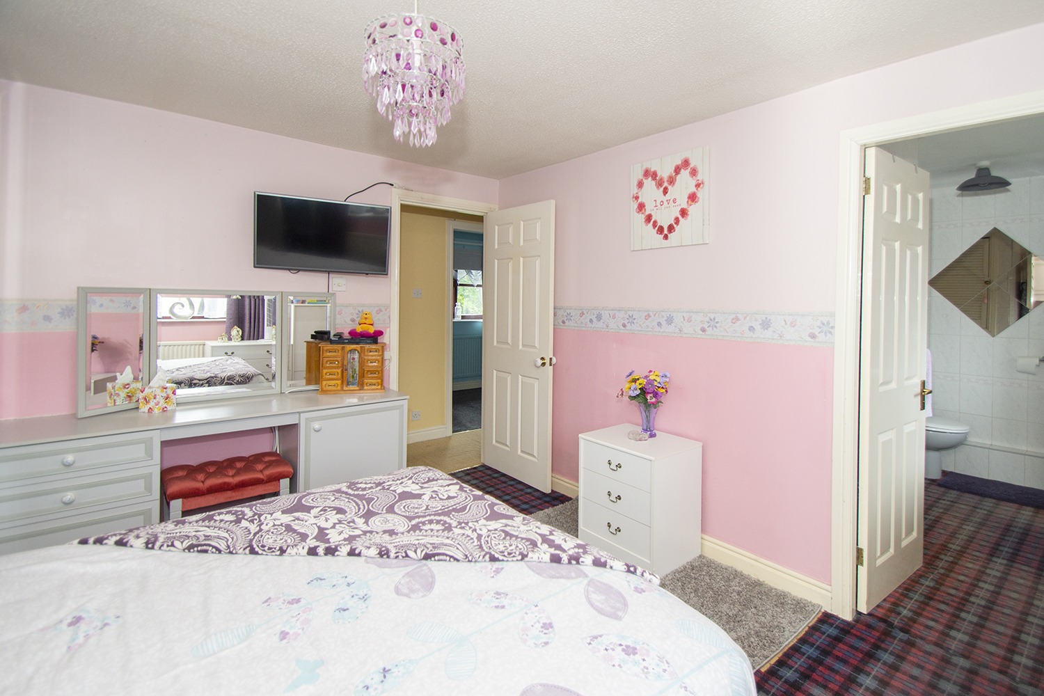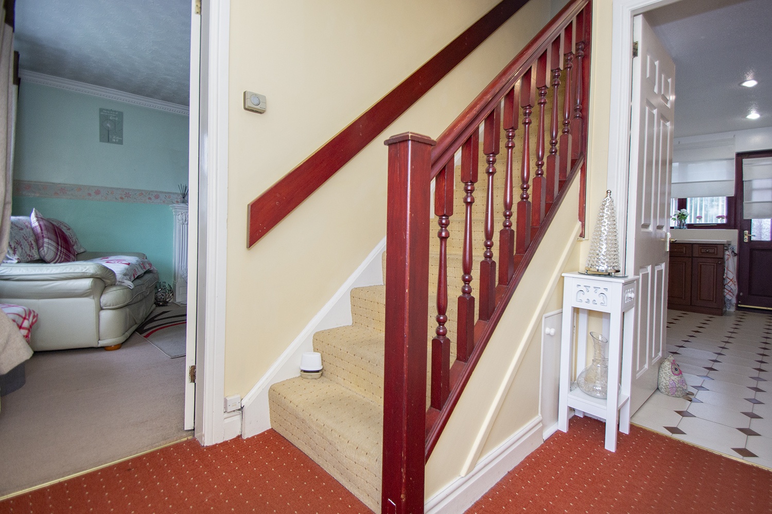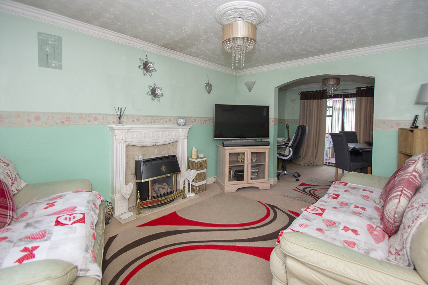 The family home is laid out over two levels with the lower level comprising entrance hallway; spacious front facing lounge with opening archway leading to the dining room with patio doors which open to the conservatory. Excellent sized kitchen which houses an ample range of base and wall units with complementary worktops and tiled splash-back areas. Two piece WC. The upper level accommodation houses the master bedroom with three piece en suite which comprises wc, shower cubicle and vanity unit housing the wash hand basin. A further two bedrooms are located on the upper level and three piece family bathroom comprising wc, bath with overhead electric shower and vanity unit which houses the wash hand basin.