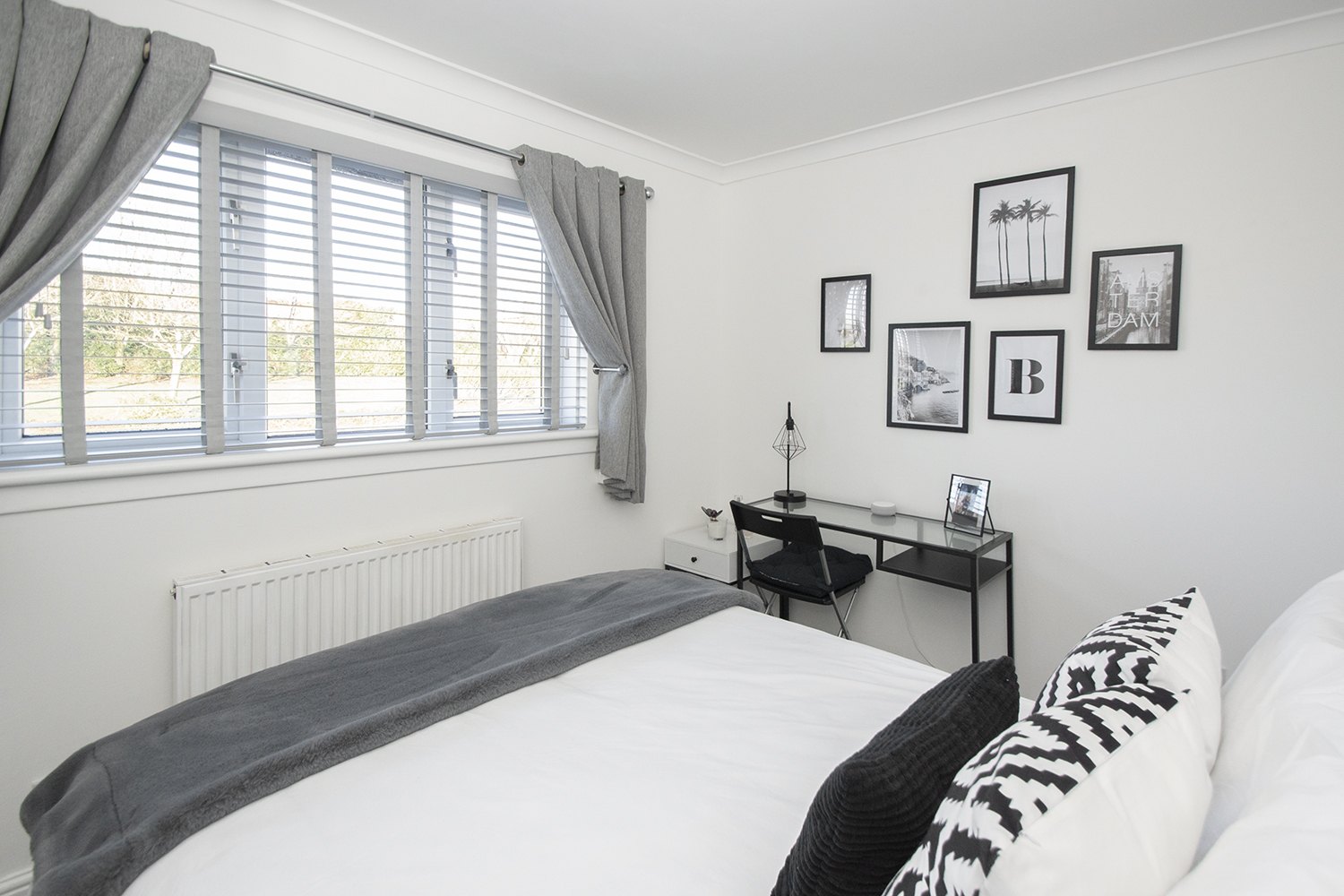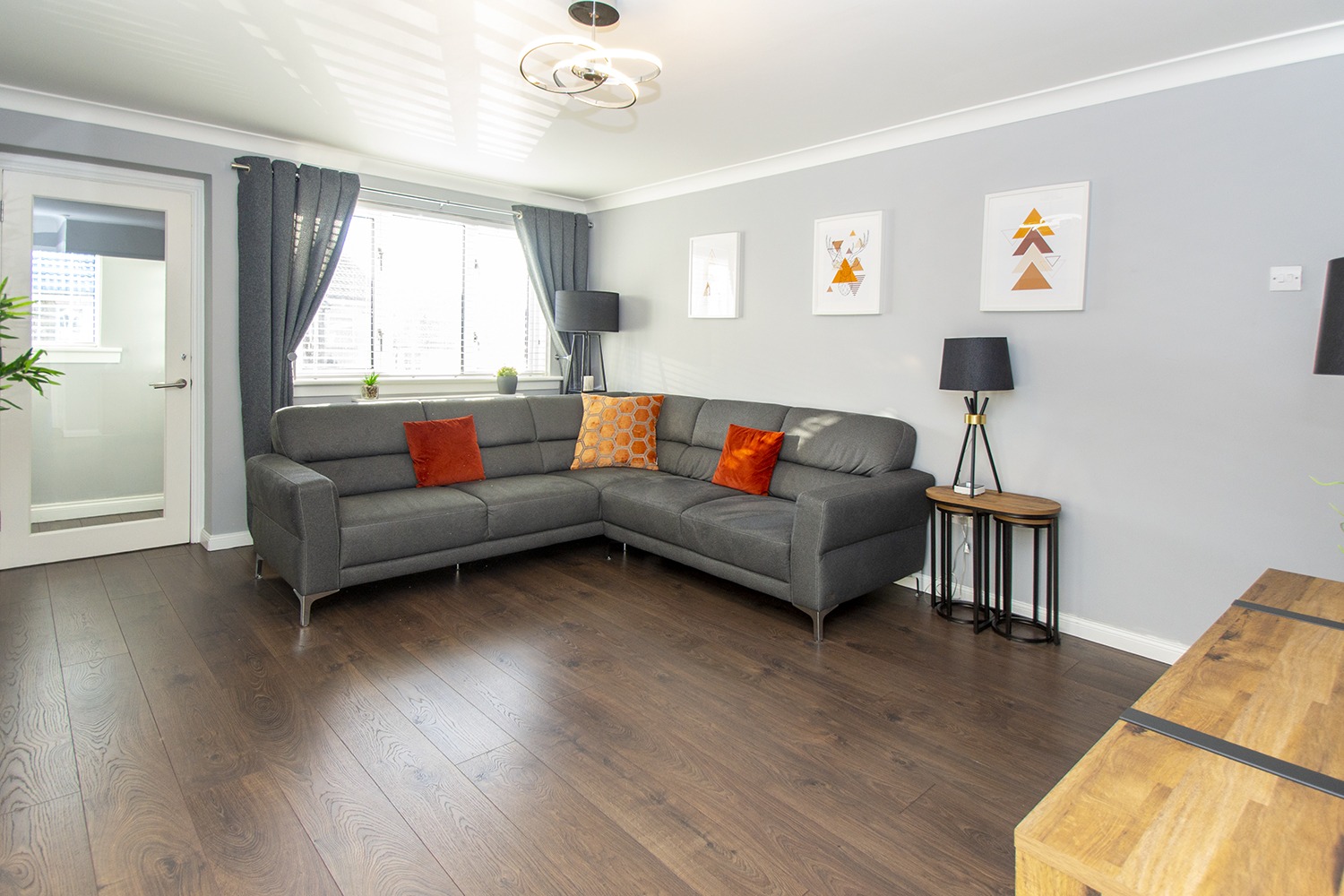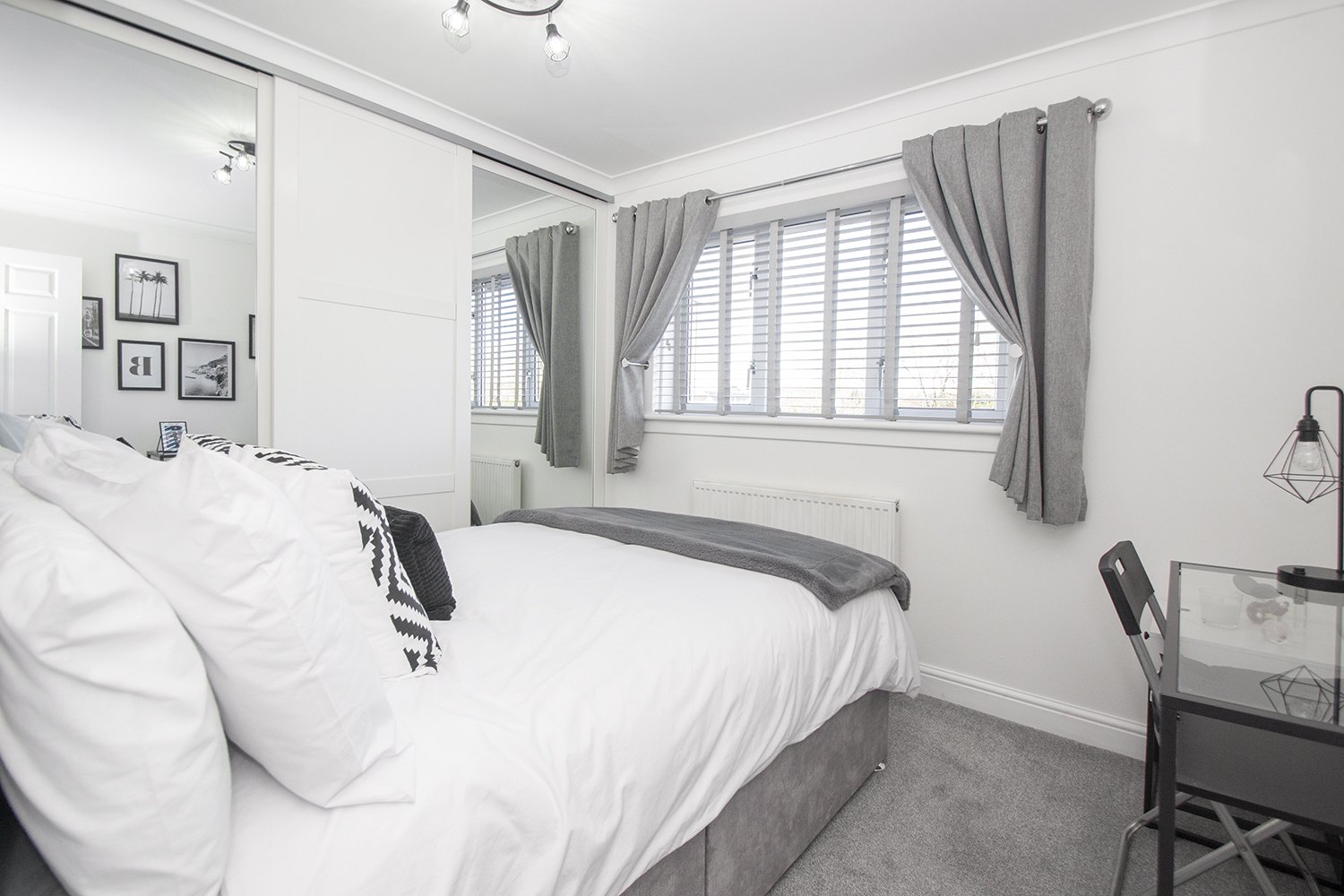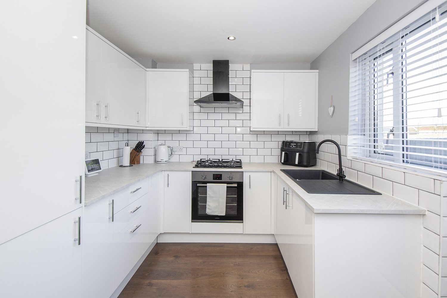 This modern home is ideally laid out over two levels comprising porch; well-proportioned front facing lounge; fitted kitchen housing an ample range of base and wall units with complementary worktops and tiled splash-back areas, integrated oven and gas hob. The upper level accommodation houses the front facing master bedroom with fitted wardrobes and rear facing 2nd bedroom also with fitted wardrobes. Three-piece family bathroom comprising of w.c, wash hand basin and bath with overhead rainfall effect shower.