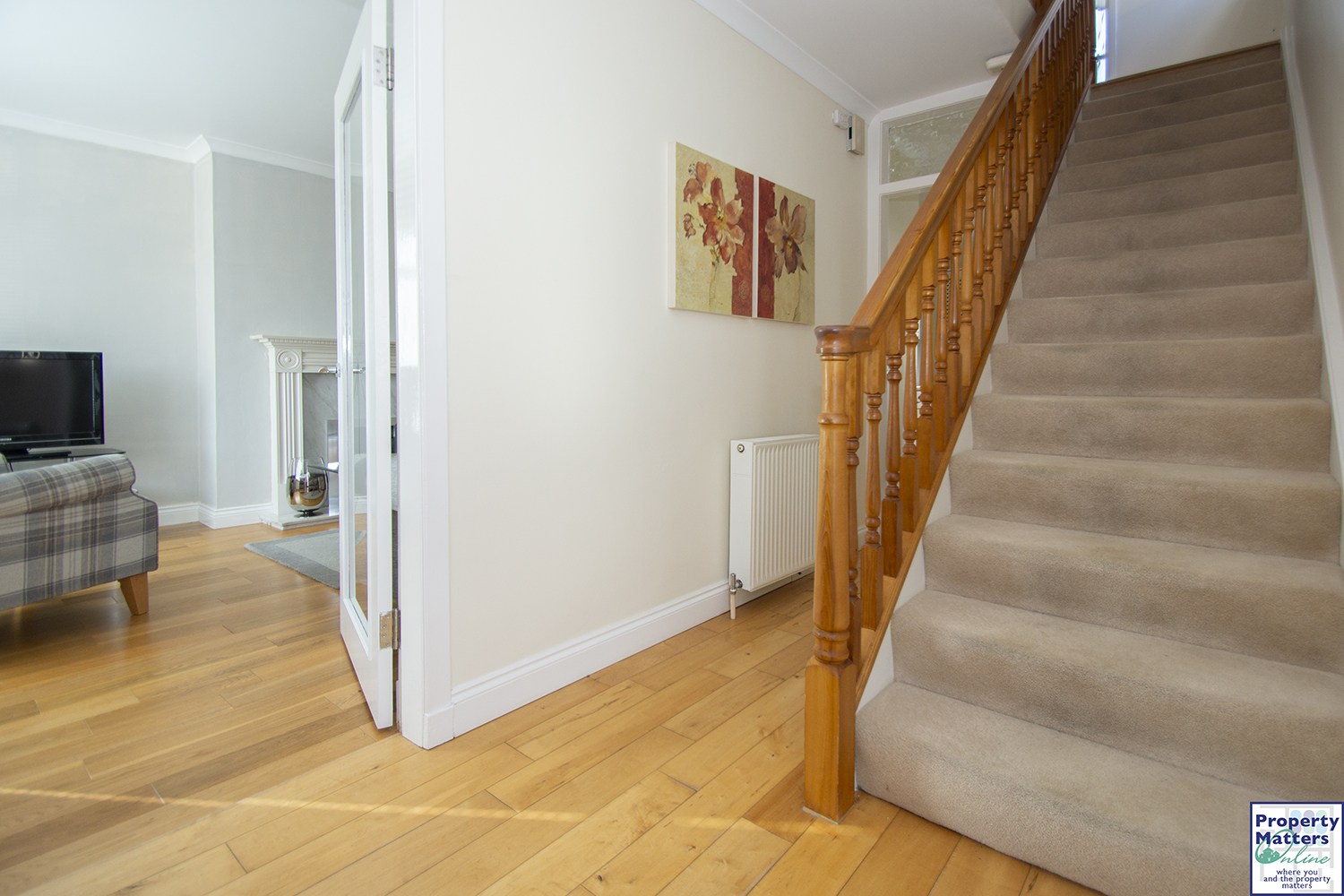 The property further benefits from full gas central heating and double glazing. The front garden has been hard landscaped for ease of maintenance, with good sized driveway to the side. Fully enclosed rear garden providing the ideal space for entertaining or simply relaxing. Wooden hut.