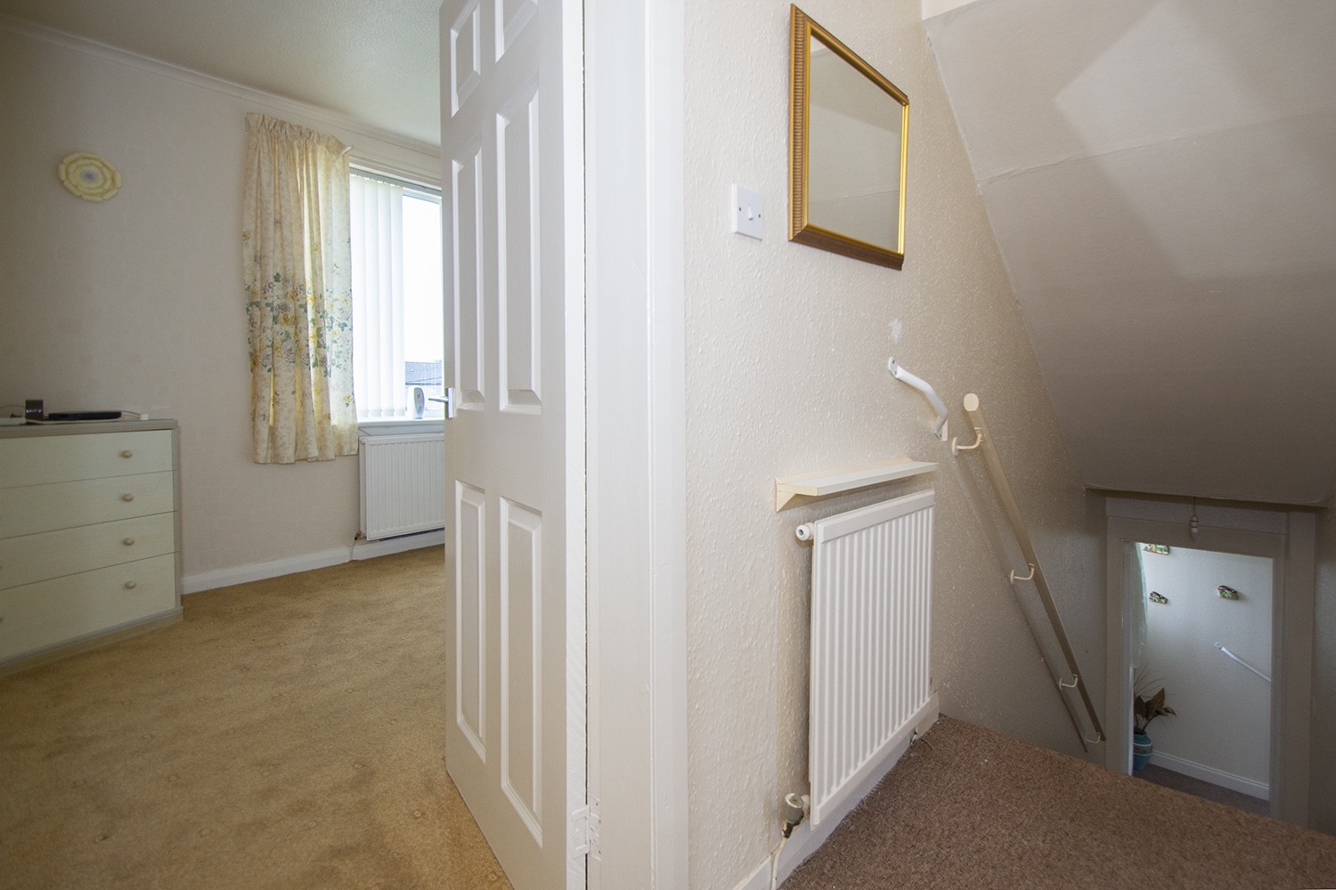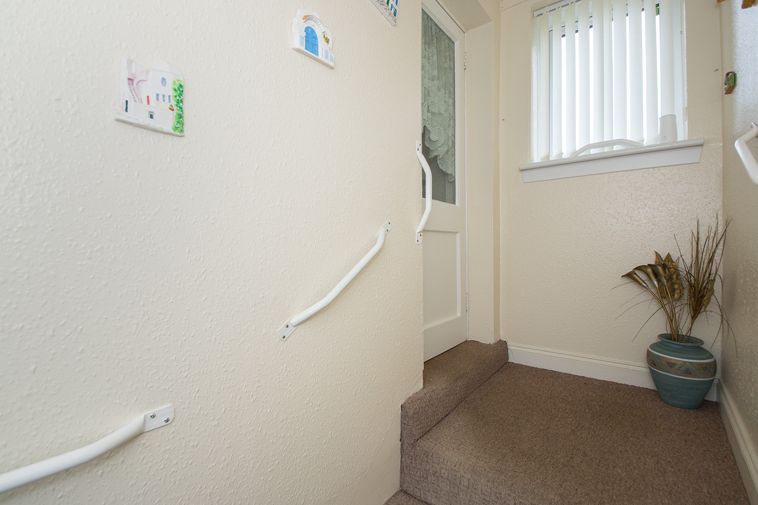 Welcoming entrance hallway with carpeted staircase to the upper level, Door giving access to all room’s and Handy storage cupboard.