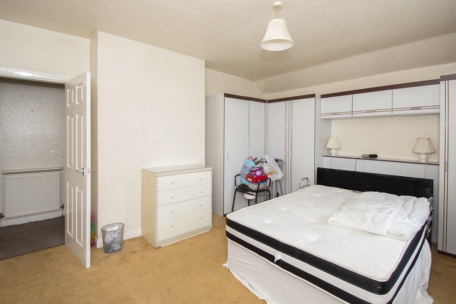 Bright good-sized rear facing double bedroom with storage cupboard. Carpet flooring. Ample power points.