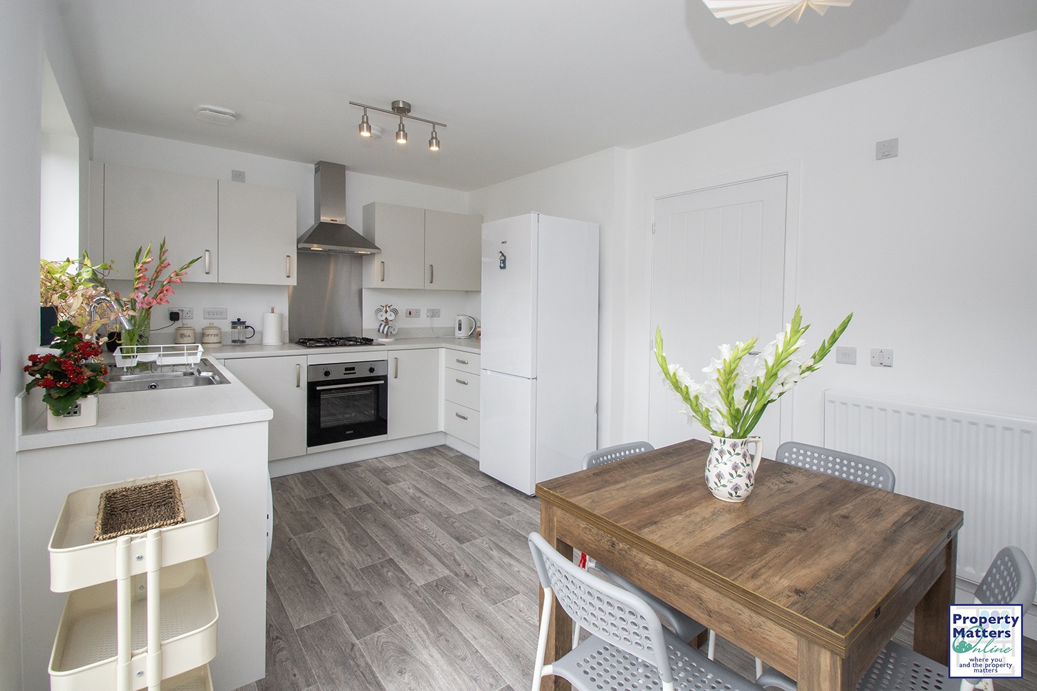 Constructed by renowned builders Miller Homes, this well-maintained home offers modern family living over two levels. In greater detail, the accommodation comprises; welcoming entrance hallway leading to the bright front facing lounge, which opens through a lobby with large under-stairs cupboard providing ample storage, and modern cloakroom. Contemporary dining kitchen which houses an ample range of base and wall units with complementary worktops and upstands, integrated gas hob, electric oven and extractor hood, and French doors which open to the enclosed rear garden.