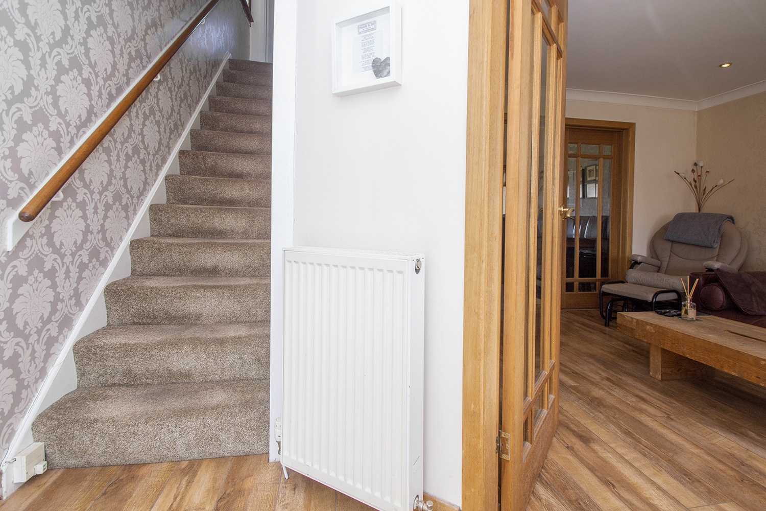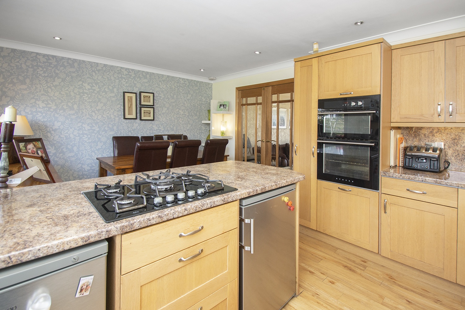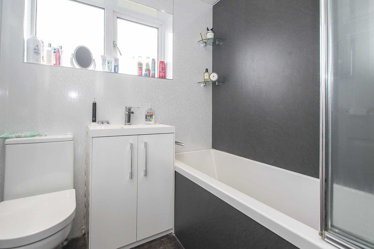 This lovely family home is presented in good condition throughout and is formed over two levels with the lower level comprising welcoming entrance hallway; front facing lounge with French doors which leads to open plan kitchen diner which houses and ample range of base and wall units with complementary worktops and splash-back areas, integrated gas hob and double oven. The upper-level accommodation houses the three good sized bedrooms with good storage and three-piece bathroom comprising wc, wash hand basin with vanity unit and bath with shower over.