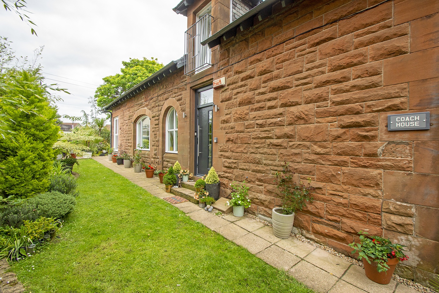 This traditional sandstone property has a contemporary feel throughout, and is formed over two levels, with the lower lever comprising welcoming entrance hallway; lounge with ceiling to floor windows and French doors allowing an abundance of natural light to flow through. The lounge is open plan to the dining kitchen which houses an ample range of base and wall units which houses an ample range of base and wall units with complementary worktops and tiled splash-back areas and integrated appliances. Two piece wc. Double bedroom with double fitted wardrobes and ensuite shower room. The upper level accommodation houses the excellent sized main bedroom with French doors opening to the Juliet balcony. A further good sized double bedroom with twin velux windows and fitted walk-in wardrobe. Contemporary three piece bathroom comprising wc, vanity unit which houses the wash hand basin and bath with overhead shower and glass screen.