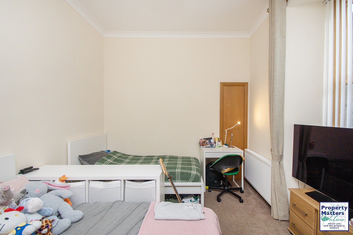 The flat boasts three well-proportioned bedrooms: two generous doubles and a good-sized single. All bedrooms are equipped with built-in storage, with the main bedroom featuring a walk-in wardrobe to help keep your living space organised.