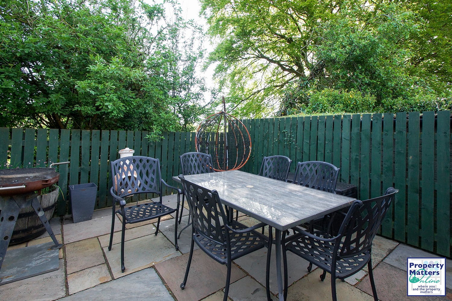 Externally, the front garden is neatly landscaped and laid to lawn, offering excellent kerb appeal. A private driveway provides off-street parking for multiple vehicles and leads to a single garage. The rear garden is a real highlight – private, landscaped, laid to lawn, and complete with a paved patio area – all set against the backdrop of beautiful open countryside views.