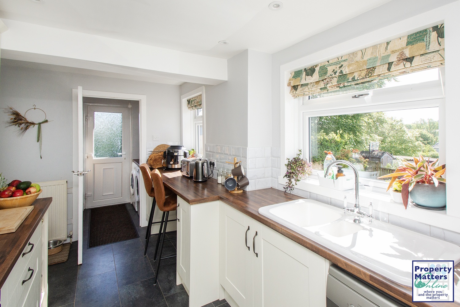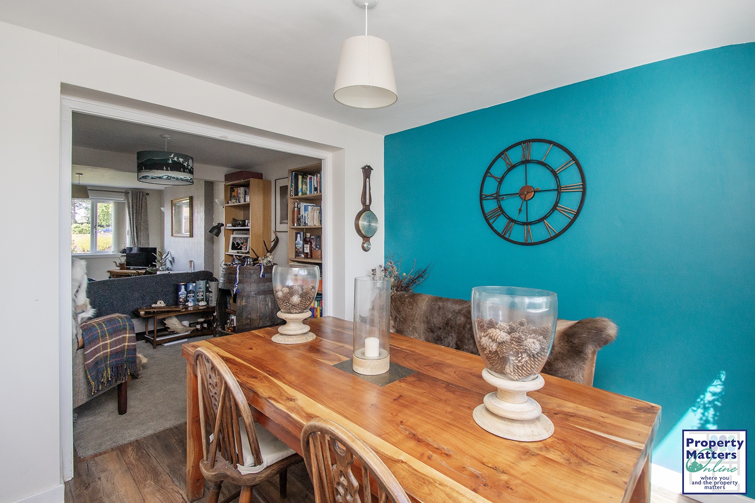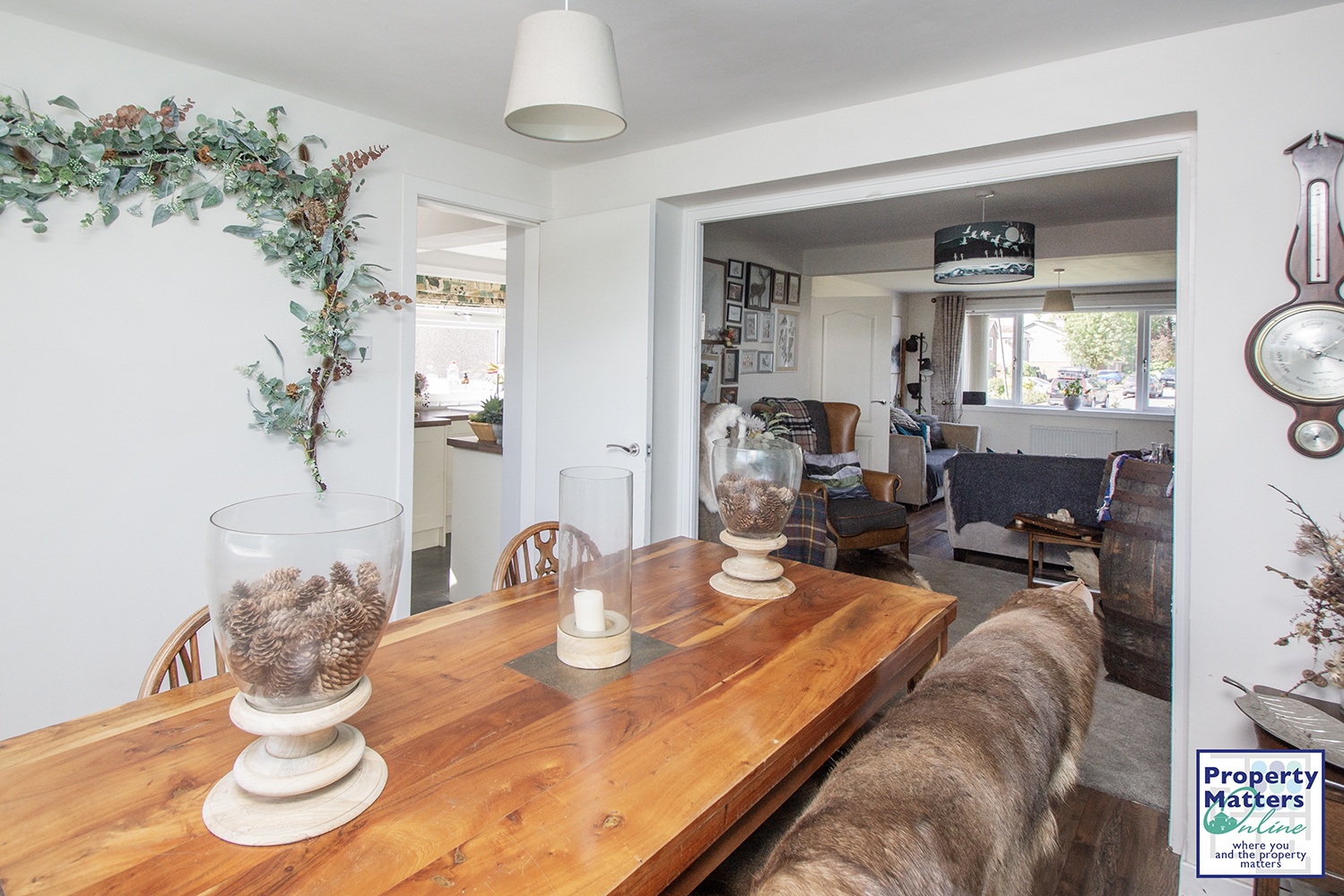 The accommodation begins with a welcoming entrance porch leading into a the hallway, complete with a useful understairs storage cupboard. To the left is the spacious lounge, extended by the previous owners, featuring a large front-facing window that fills the room with natural light. An archway from the lounge leads into the dining room, which enjoys open views across the rear garden, and out onto the countryside. The dining room also provides secondary access to the kitchen.