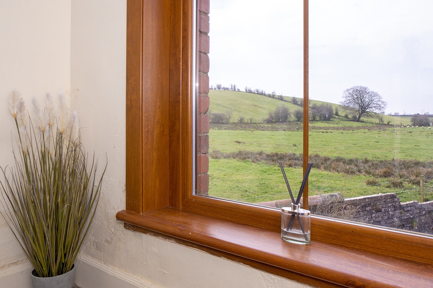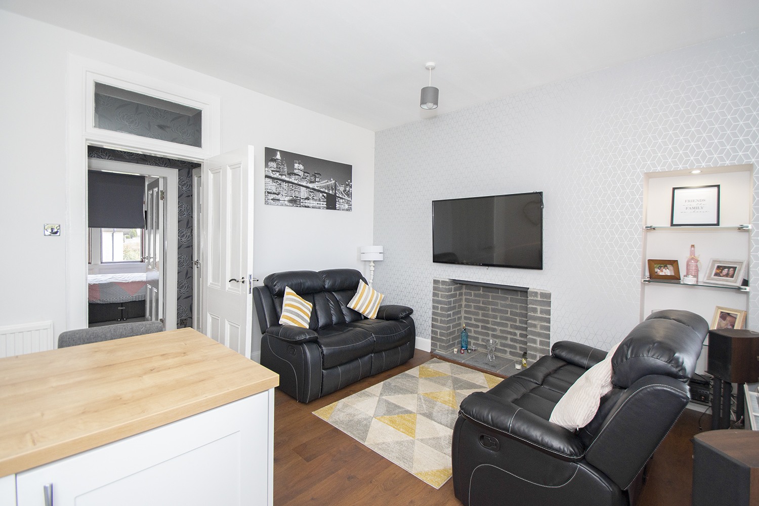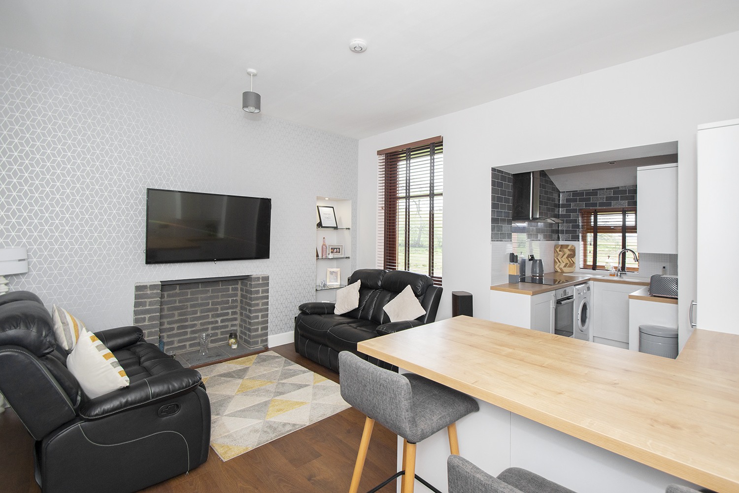 Very spacious rear facing living area with views over surrounding countryside. Fresh modern décor. Breakfast bar area with stools. Integrated fridge freezer. Recessed alcove. Laminate flooring. Ample power points.