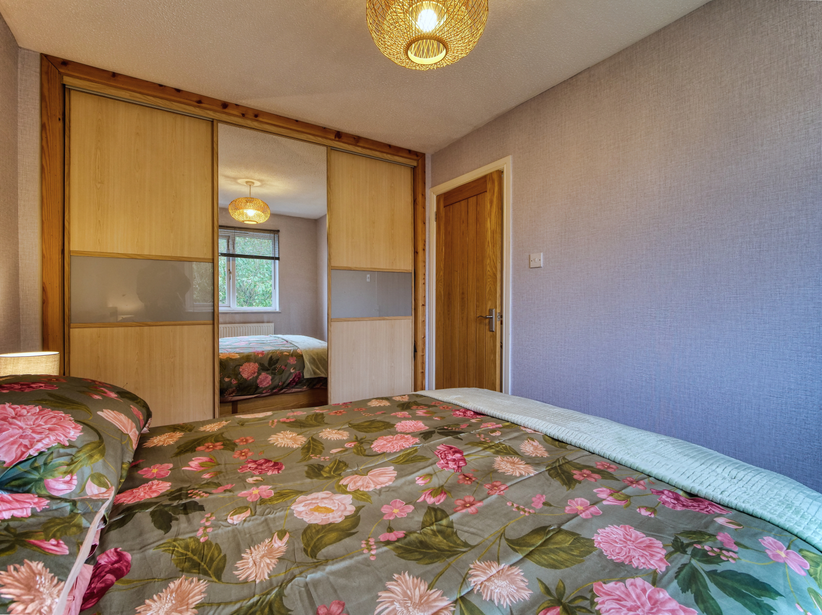 Upon entering the welcoming hallway which leads to a bright and spacious living room featuring a stylish panelled wall, contemporary décor, and a useful storage cupboard.