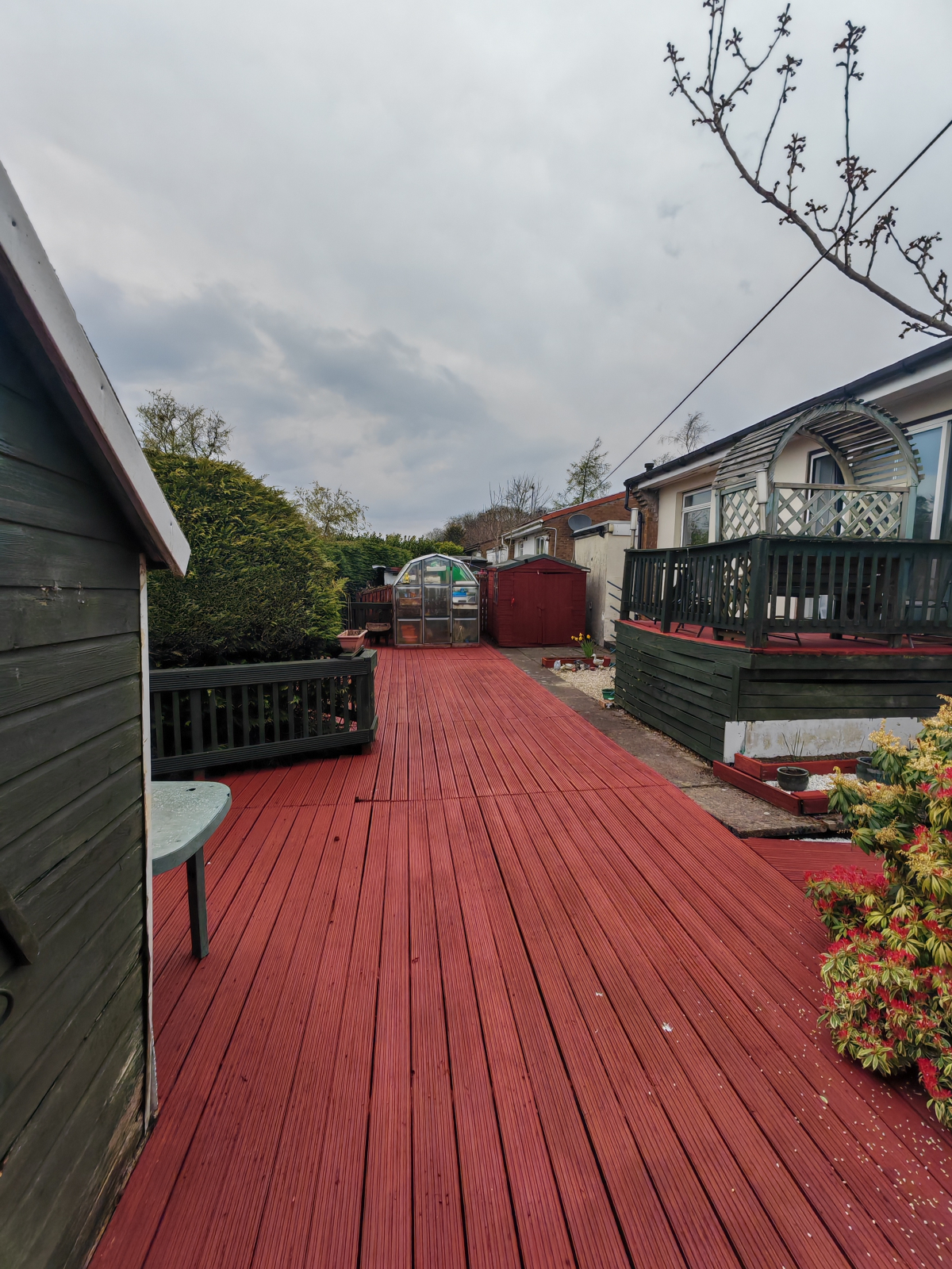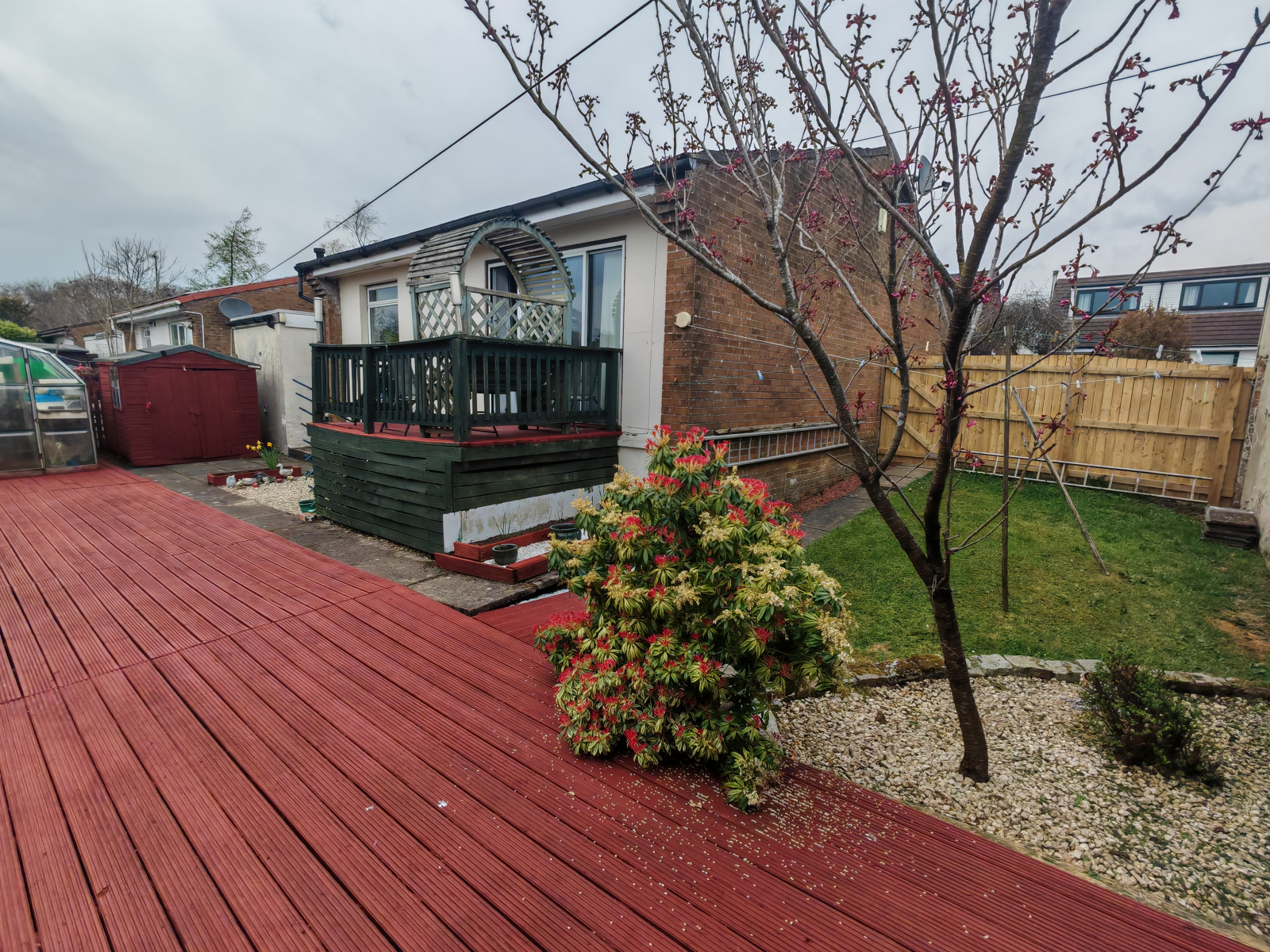 At the rear, the property offers a beautifully landscaped garden, designed for low-maintenance enjoyment. It features a decked and slabbed patio area, alongside a well-maintained lawn, making it an ideal spot to relax and entertain, especially on warm summer evenings.