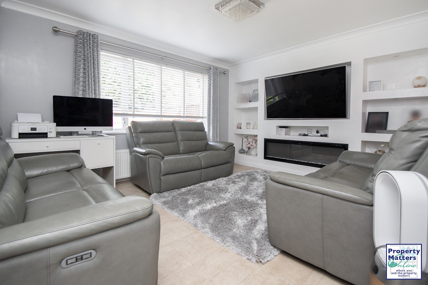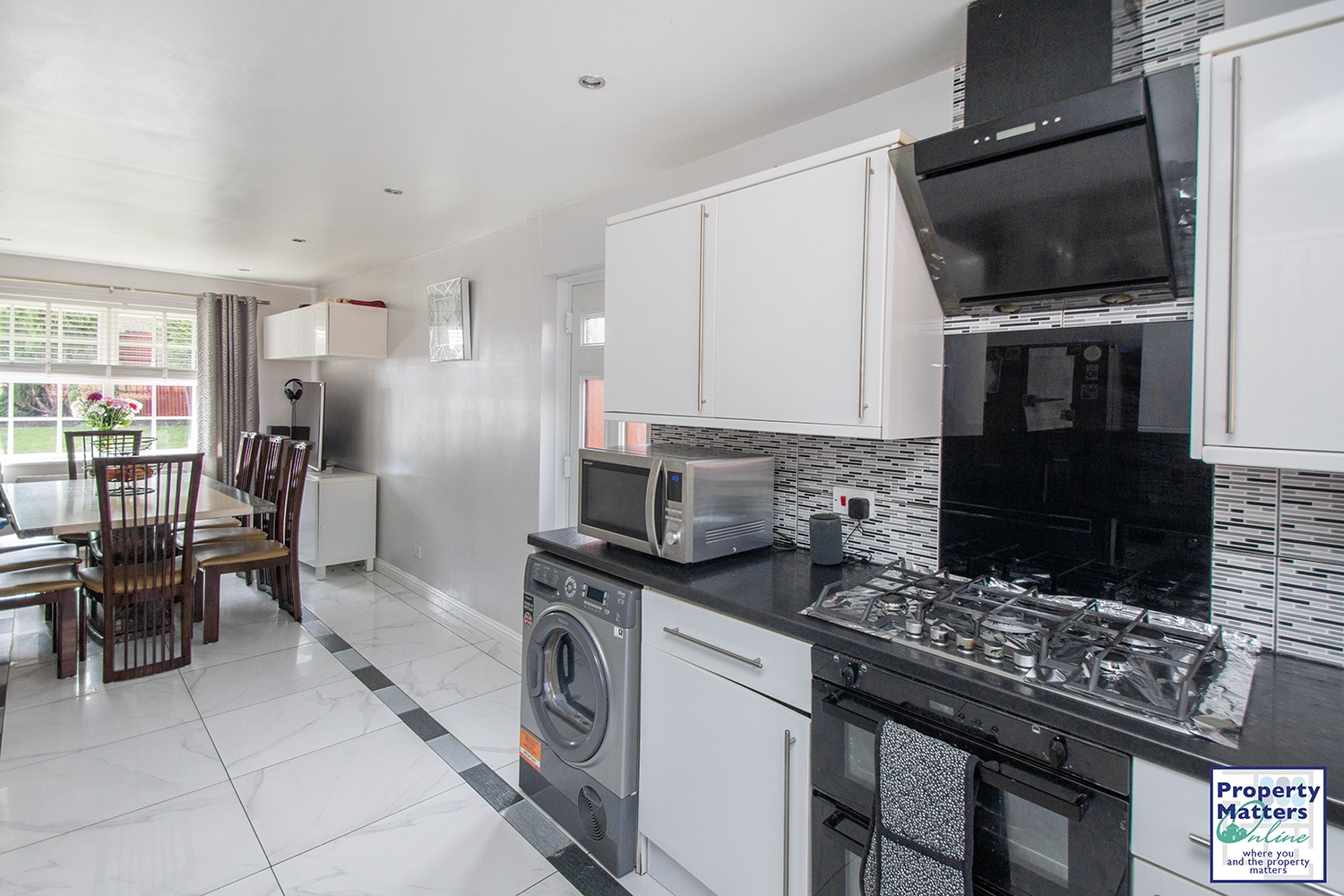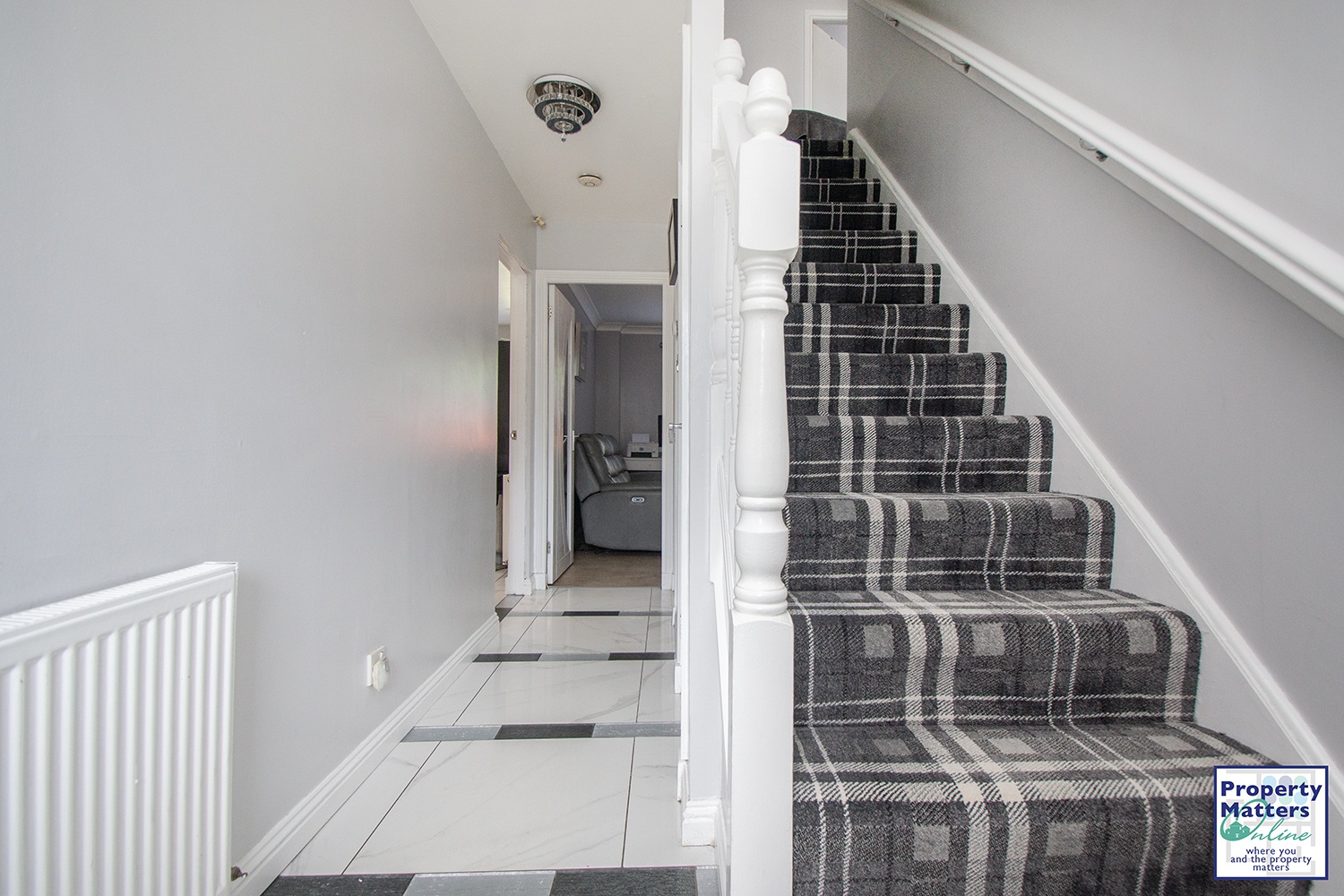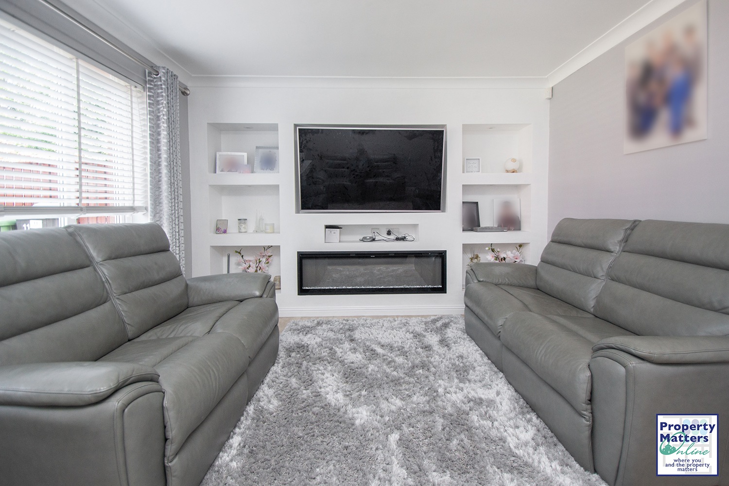 This spacious property offers well-proportioned accommodation across two levels, making it an ideal home for growing families. On entering the home, you are welcomed by a bright and inviting hallway which benefits from a useful understairs storage cupboard and a convenient downstairs WC. The heart of the home is the generous kitchen and dining/family area. The kitchen is fitted with a range of contemporary wall and base units, a gas hob, built-in oven, and space for free-standing appliances. The adjoining dining area offers ample space for family dining and entertaining and provides direct access to the private rear garden. The spacious lounge is flooded with natural light and features a stylish built-in media wall, creating a modern yet cosy living space.