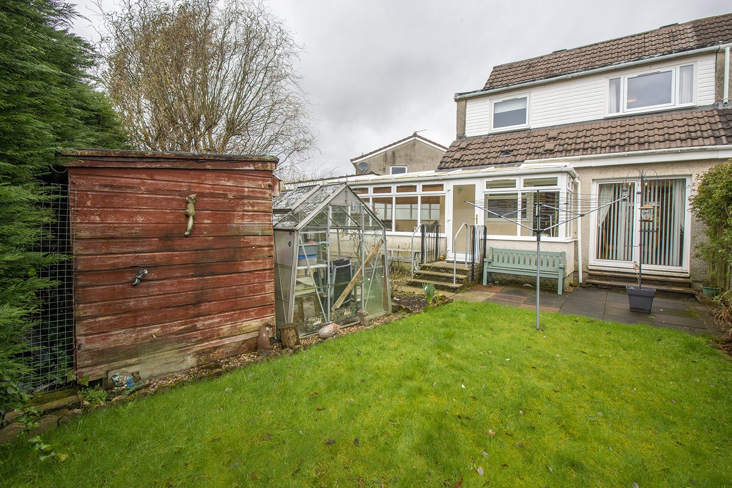 The property has good sized garden grounds with a large mono bloc driveway leading to the garage. The rear garden has slabbed, chipped and lawned areas.