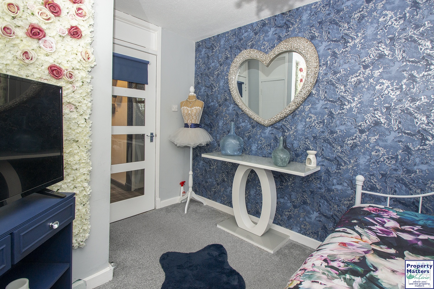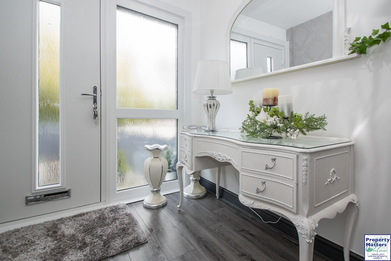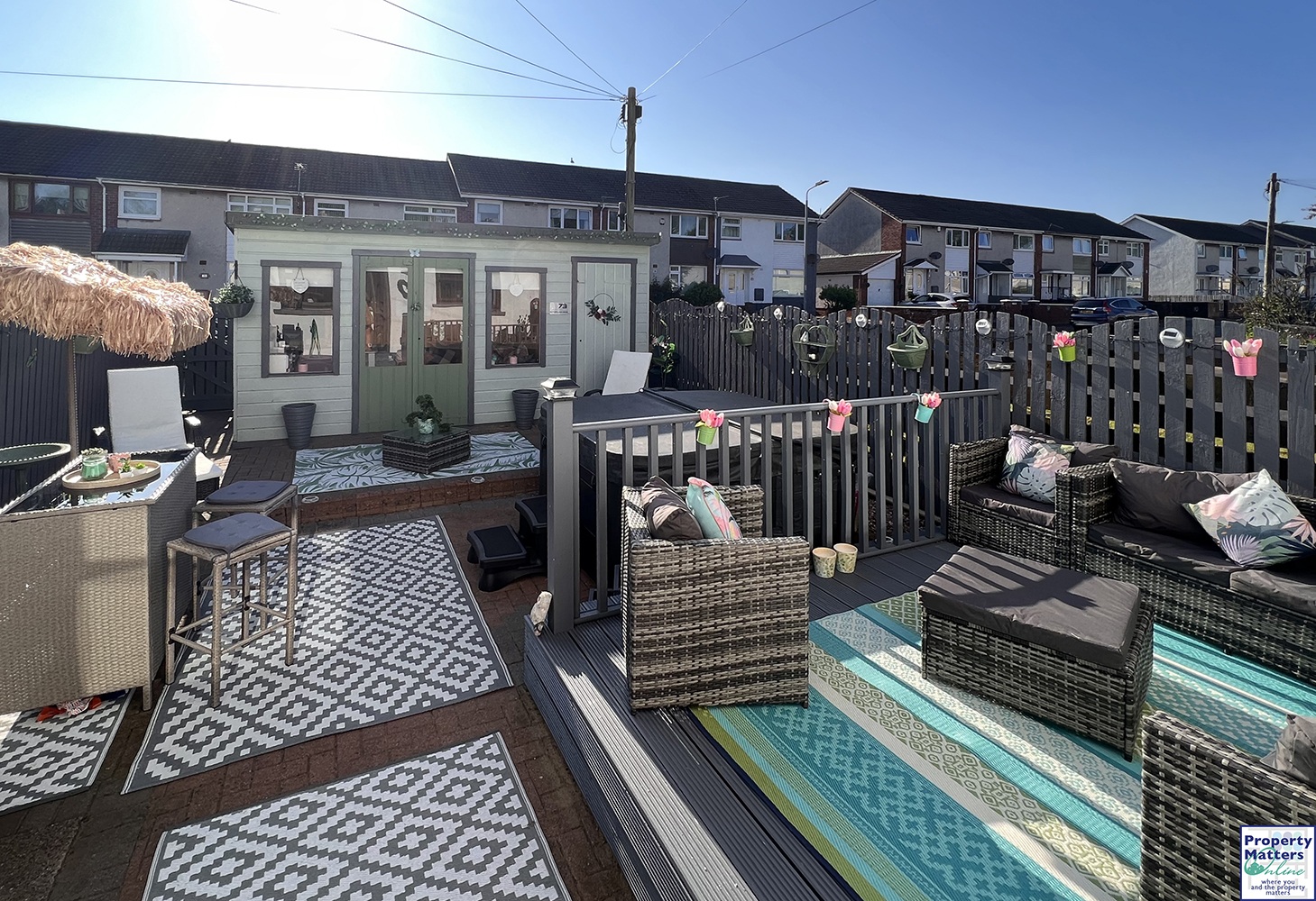The property further benefits from easily maintained front garden with slabbed walkway and chipped areas. Fully enclosed monobloc rear garden with decked patio area for relaxation. This property benefits from a spacious shed and outhouse. Gas central heating and double glazed.