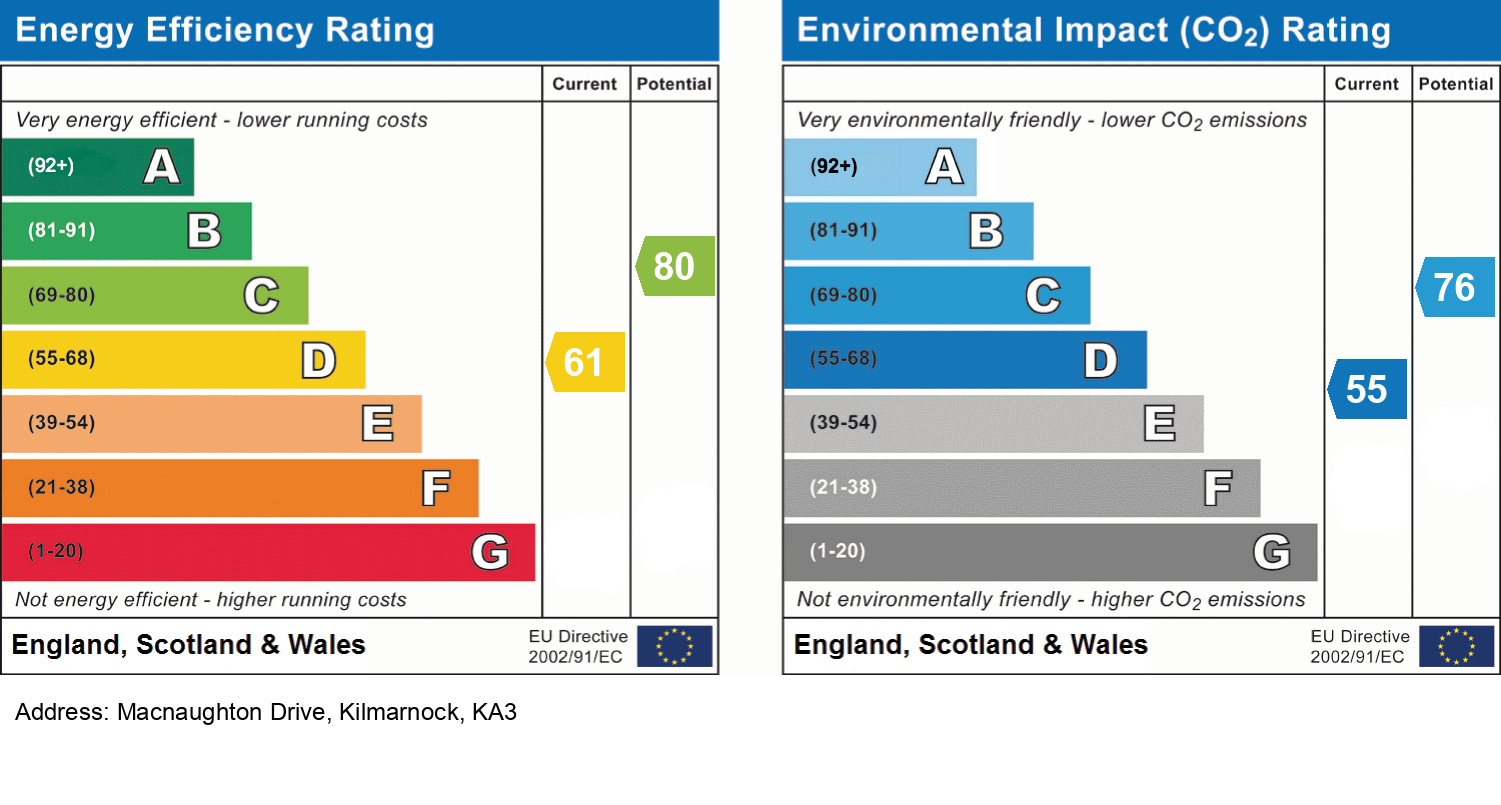 The accommodation is situated minutes from the new William McIlvanney Campus, transport links and local Amenities. Kilmarnock town centre is within walking distance and enjoys excellent amenities which include an extensive range of local shops which cater for everyday requirements as well as a choice of banks and supermarkets. For the commuter there are good local transport links which include a rail link from Kilmarnock Town Centre adjoining the area to Glasgow City Centre and the Ayrshire coast. Additionally, there are established road links with the extensive M77 motorway network providing a fast and efficient route to Glasgow, Ayr, Prestwick and Prestwick International Airport. Leisure pursuits can be enjoyed at Dean Castle Country Park, the Galleon Leisure Centre as well as a choice of local golf clubs. This property must be viewed to be full appreciated.