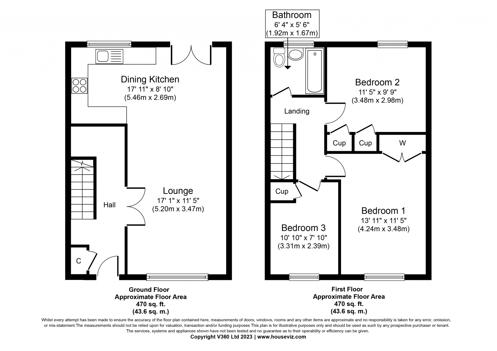 The accommodation is formed over two levels with the ground floor comprising entrance hallway with French doors opening to the spacious open plan living, dining and kitchen area with front facing window and French doors which open from the dining area to the rear garden. The first floor houses the three well-proportioned bedrooms and three-piece family bathroom comprising vanity unit which houses the wc and wash hand basin, and bath with overhead shower.