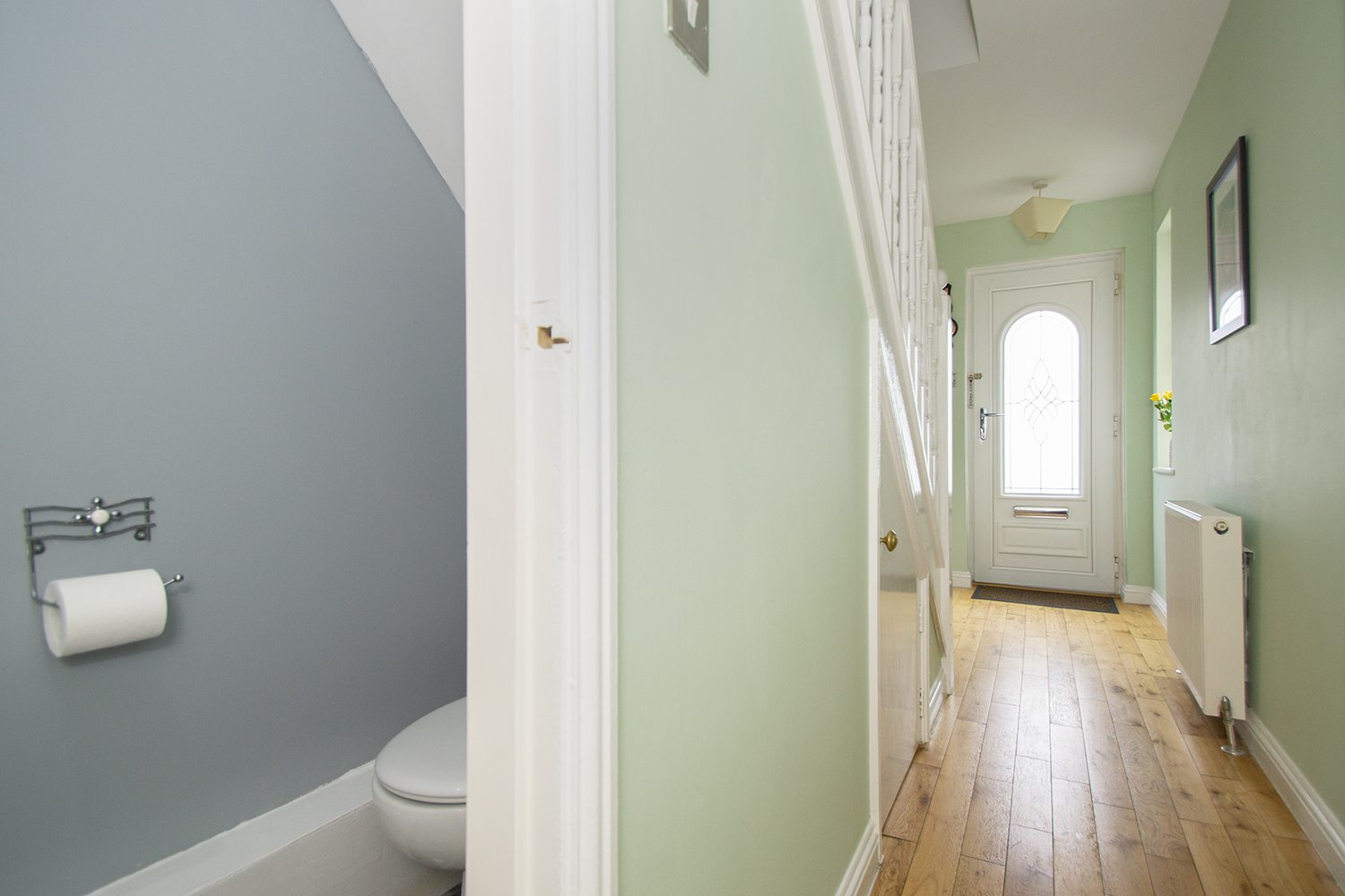 property. Offering generous family accommodation over two levels and located within a popular area, close to local schools. The property comprises an entrance hallway giving access to the downstairs study/reception room, rear facing lounge with French doors giving access to the rear garden, the kitchen/dining which houses an ample range of base and wall units, with complementary worktops, integrated double oven and gas hob. Off the hall is also a downstairs w.c and storage cupboard. The upper-level accommodation houses 4 good sized bedrooms all of which have double built in wardrobes and the main bedroom which also has an en-suite comprising of w.c, wash hand basin and shower.