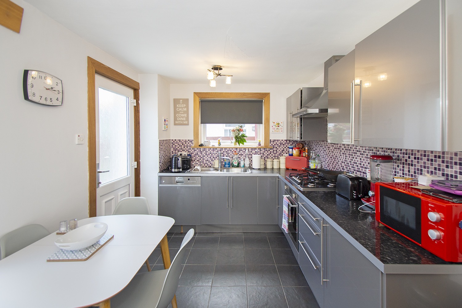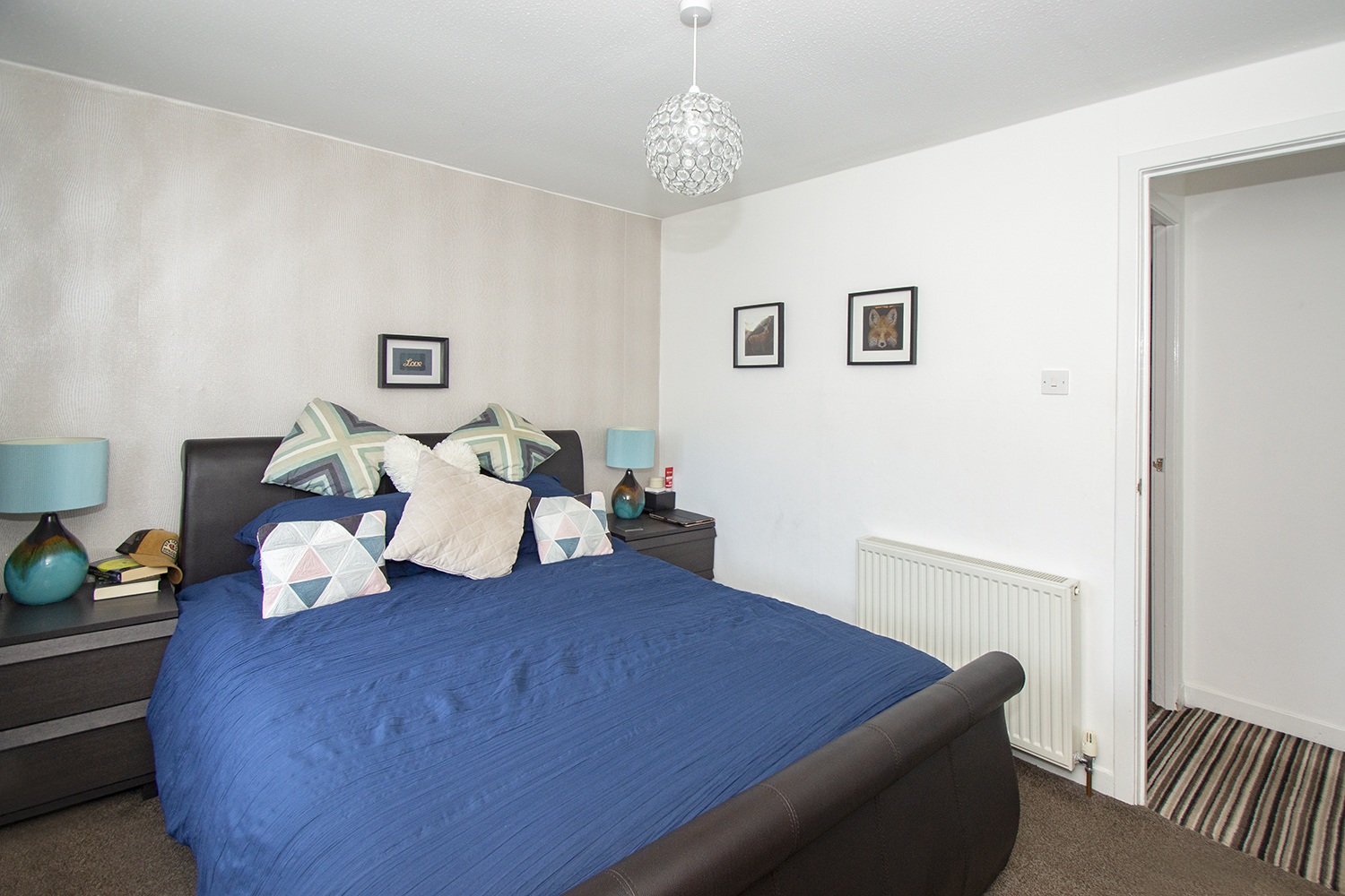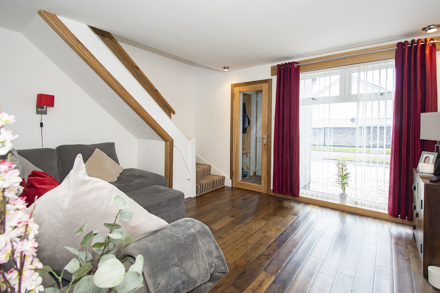 This stunning family home is immaculately presented throughout and is formed over two levels with the lower level comprising entrance vestibule which leads to the front facing lounge, with modern décor and solid wood flooring. Rear facing fitted kitchen/diner which houses an ample range of base and wall units, with complementary worktops and tiled splashback areas, integrated appliances. Please note cooker hood and dishwasher are not operational. The upper-level accommodation houses the main bedroom with modern décor and fitted cupboard. A further good sized bedroom and contemporary three-piece family bathroom with wc, wash hand basin with and bath with electric shower over.